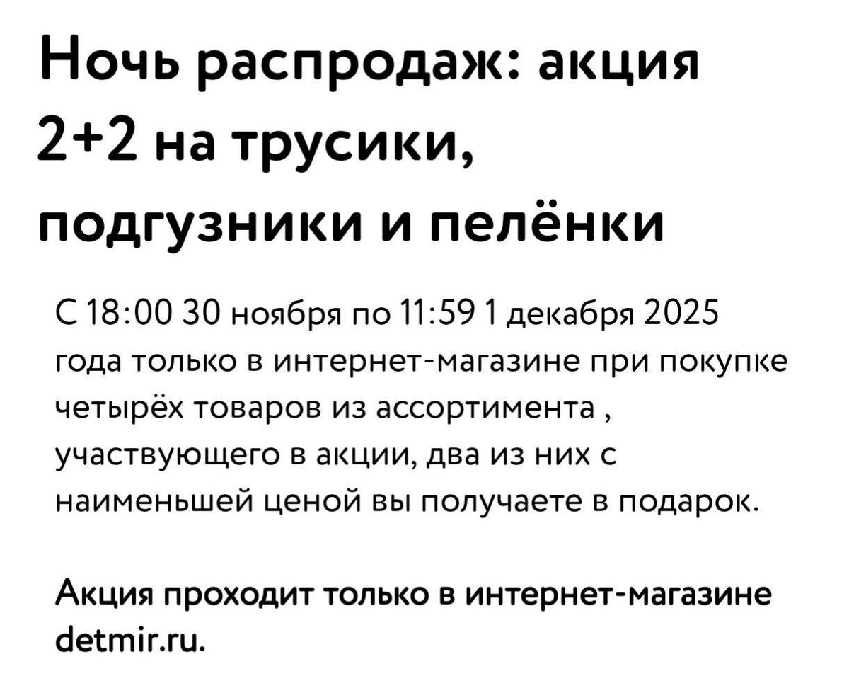 🟥🟨🟩🟦 ДЕТСКИЙ МИР АКЦИЯ 2+2 НА ТРУСИКИ, ПОДГУЗНИКИ И ПЕЛЕНКИ https://detmir.ru/catalog/index/name/podguzniki_nr4_action ✅ Подписаться 🔣 Бот с промокодами
