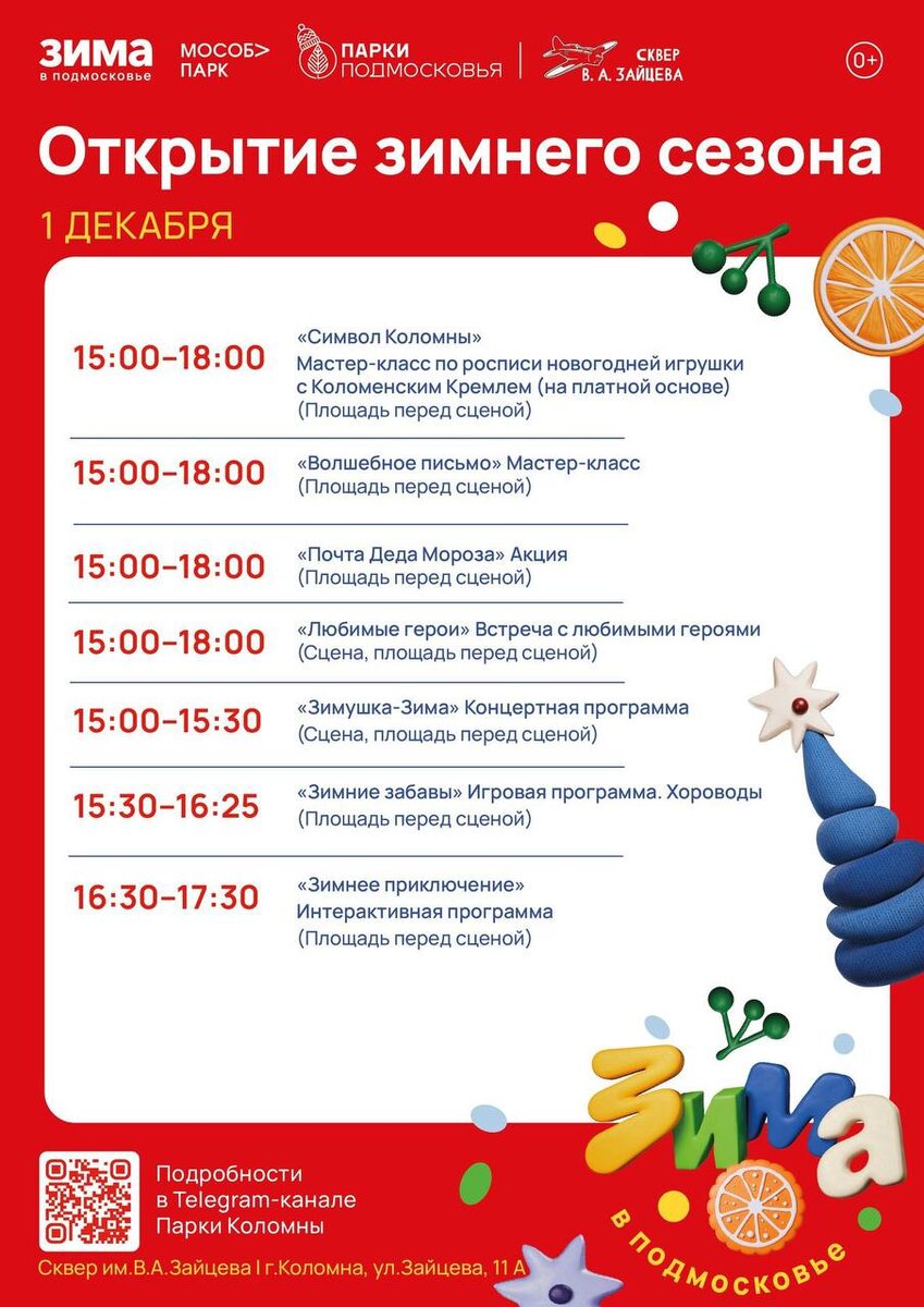 ❄ «Открытие зимнего сезона» в сквере имени В.А. Зайцева Зима в парках Подмосковья — заряжайся волшебством! Гостей ждут зимние мастер-классы, концертная программа «Зимушка-Зима», игровая и интерактивная программа с хороводами у красавицы елки! Каждый желающий сможет написать волшебное письмо и положить его в почтовый ящик Деда Мороза! А маленьких гостей парка ждет встреча с героями любимых мультфильмов. Приходите всей семьёй — вас ждёт уют, вдохновение и чудесное настроение зимней поры! Дата: 1 декабря с 15:00 до 18:00 Место: Коломна, Сквер им. В.А. Зайцева #ГородскойОкругКоломна #Коломна #КоломнаZдесь #КоломнаОзёры #Подмосковье #НашеПодмосковье #Московскаяобласть