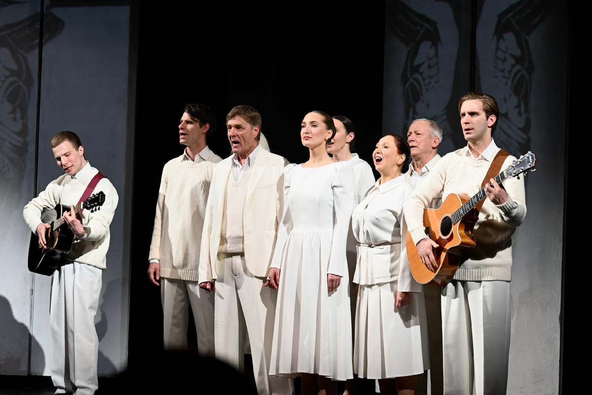 Сегодня мне хочется рассказать об одном спектакле, который я вместе со своей маленькой спутницей посмотрела в рамках биеннале «Уроки режиссуры», который проходит при поддержке Президентского фонда культурных инициатив, а его партнером выступает СТД РФ. Я не анонсировала его заранее, потому что о нем хочется рассказать как-то по особенному тепло. Этот спектакль — «Живые картины блокады» от санкт-петербургского Театра-фестиваля «Балтийский дом» — был создан к отмечаемому в этом году 80-летию полного освобождения Ленинграда и показан вне конкурсной программы. Его название очень точно отражает суть происходящего на сцене. В основе постановки, подготовленной совместно с Эрмитажем, лежат реальные дневники, письма и воспоминания сотрудников музея, оставшихся в блокадном городе. Перед зрителем разворачиваются исторические хроники, рассказы о том, как люди каждый день, вопреки всему, спасали музейные экспонаты, перевозили коллекцию, заботились о детях в эрмитажном интернате, читали лекции об и