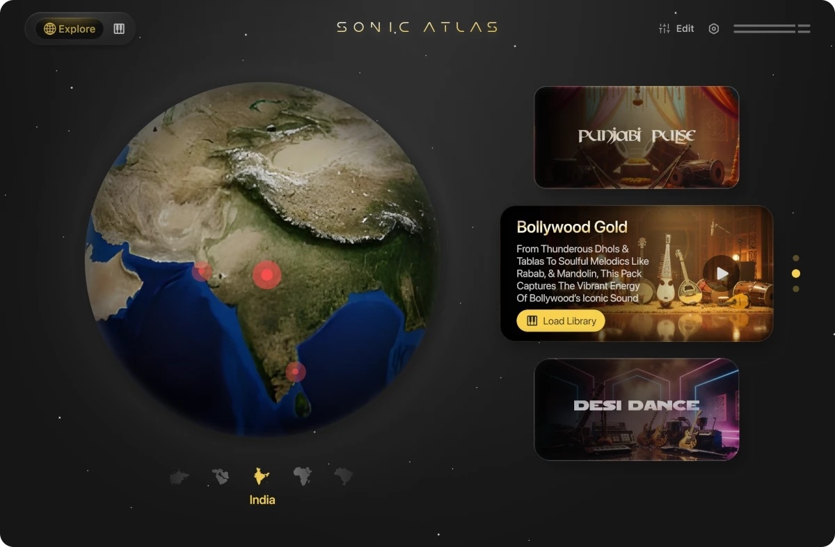Sonic Atlas — это новый бесплатный инструмент от Pitch Innovations, в котором разработчики предлагают совершенно свежий взгляд на работу с сэмплами: вместо абстрактных наборов звуков вы получаете тщательно собранные коллекции, посвящённые определённым регионам мира. Такой подход выглядит особенно логичным для компании, которая уже не раз показывала, как можно сочетать технологичность и музыкальность, вспомните Groove Shaper или Fluid Chords 2 — инструменты, созданные не ради демонстрации возможностей, а ради того, чтобы вы могли играть, не отвлекаясь на технические детали. Первая доступная часть Sonic Atlas посвящена Индии и включает три пака: Bollywood Gold с характерными мелодическими линиями, Desi Dance с драйвовыми грувами и Punjabi Pulse, который даёт акцент на энергичные ударные и современные панджабские ритмы. Все звуки записаны музыкантами, хорошо знакомыми с традиционной манерой исполнения, что делает инструмент не просто сборником сэмплов, а своеобразным проводником в культу