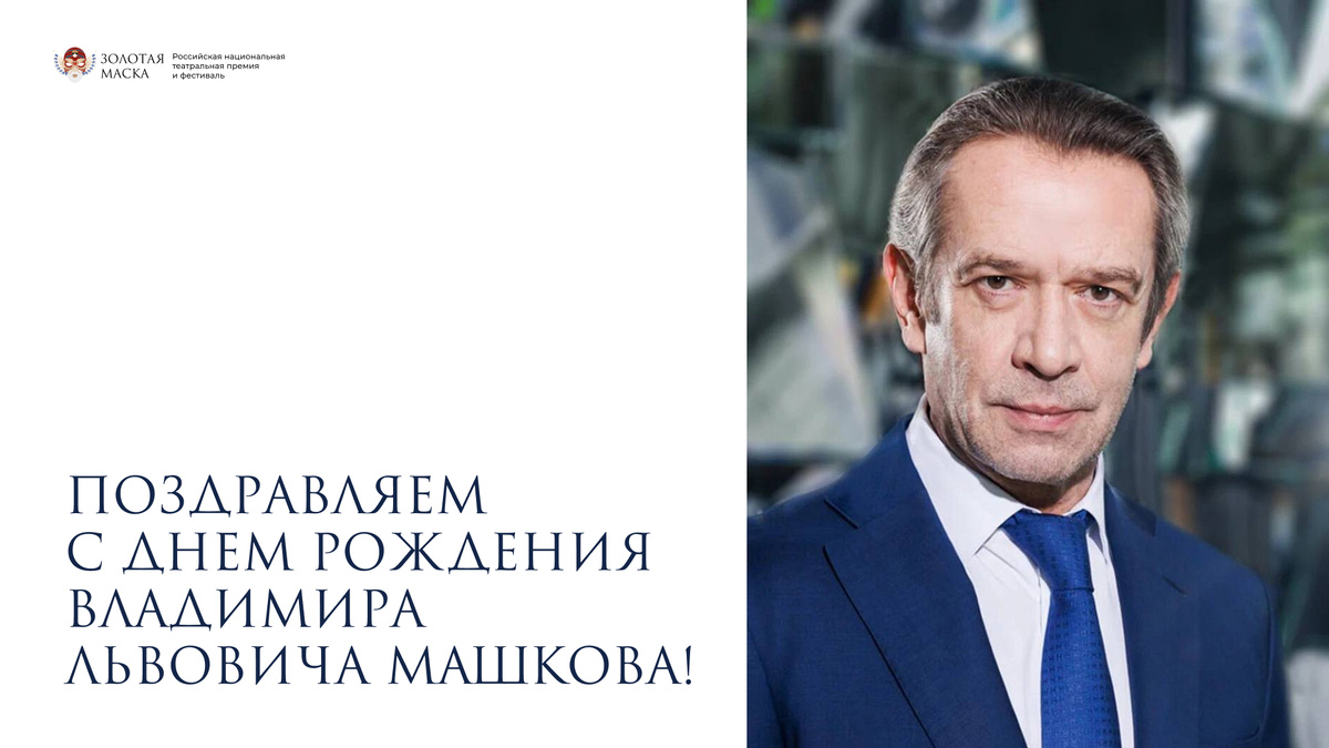 Сегодня свой день рождения отмечает президент премии и фестиваля «Золотая Маска» Владимир Львович Машков! Действующий артист, художественный руководитель двух театров, театральной школы, председатель Союза театральных деятелей и президент главной театральной премии и фестиваля, Владимир Львович уделяет большое внимание поддержке театров по всей стране и сохранению культурных традиций отечественной сцены. Как руководитель, он задает вектор развития большому коллективу единомышленников, усиливает внимание к региональным коллективам, укрепляет связи между театральными школами страны. Присущие Владимиру Львовичу талант, энергия и преданность театральному искусству вдохновляют коллег и зрителей. От всей души поздравляем с днем рождения, желаем крепкого здоровья, неиссякаемой энергии и вдохновения на новые свершения!