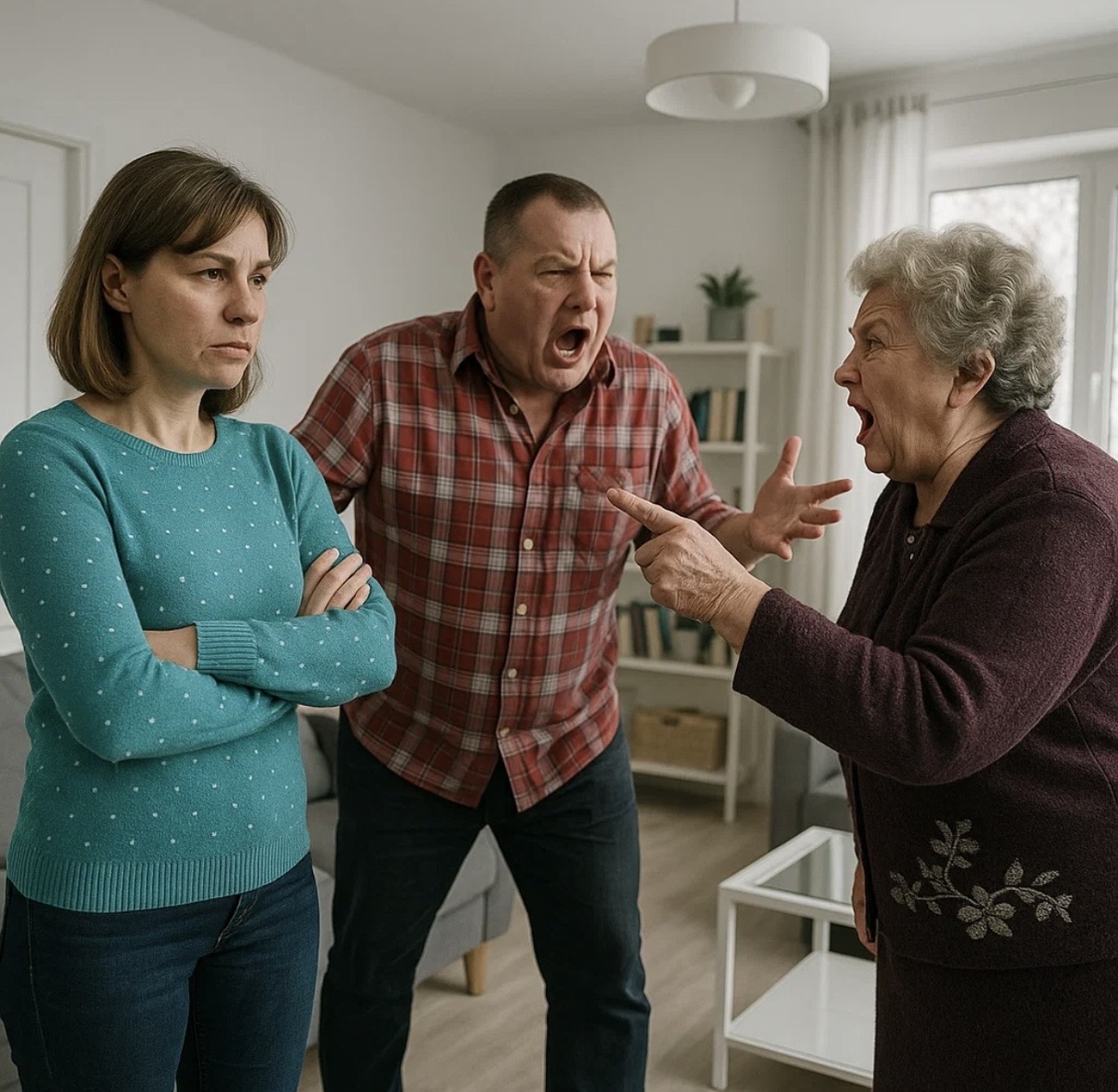 Олег примчался через полчаса — взъерошенный, злой. Он вошел в торговый центр, сразу увидел их у колонны: мать с победным лицом, жену — бледную, с каменным выражением.
