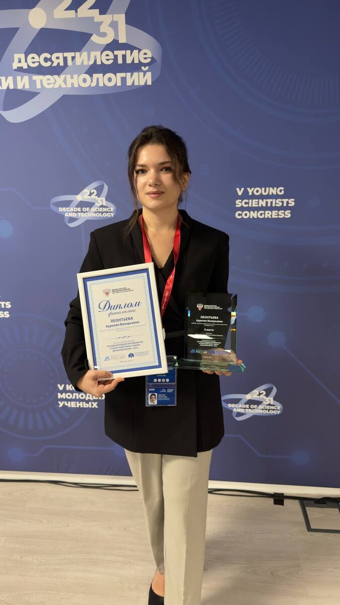 Ассистент кафедры Тверского медуниверситета стала победителем Всероссийского конкурса молодых преподавателей 🙏🏻 Ассистент кафедры микробиологии и вирусологии с курсом иммунологии Тверского медицинского университета, начальник научного отдела, руководитель СНО вуза Аурелия Леонтьева стала победителем Всероссийского конкурса «Лучший молодой преподаватель в сфере подготовки кадров здравоохранения – 2025». Она заняла II место в номинации «Компетенции реализации учебного процесса». Конкурс проводится Общероссийской общественной организацией «Медицинская Лига России», объединяющей ведущих специалистов сферы здравоохранения и методистов медицинского образования. Торжественная церемония награждения состоялась в рамках V Конгресса молодых учёных 28 ноября на федеральной территории «Сириус» — крупнейшей российской площадке для научных, образовательных и технологических инициатив. Награждение лауреатов провёл академик РАН Онищенко Г.Г., что подчеркнуло высокий статус конкурса и значимость п