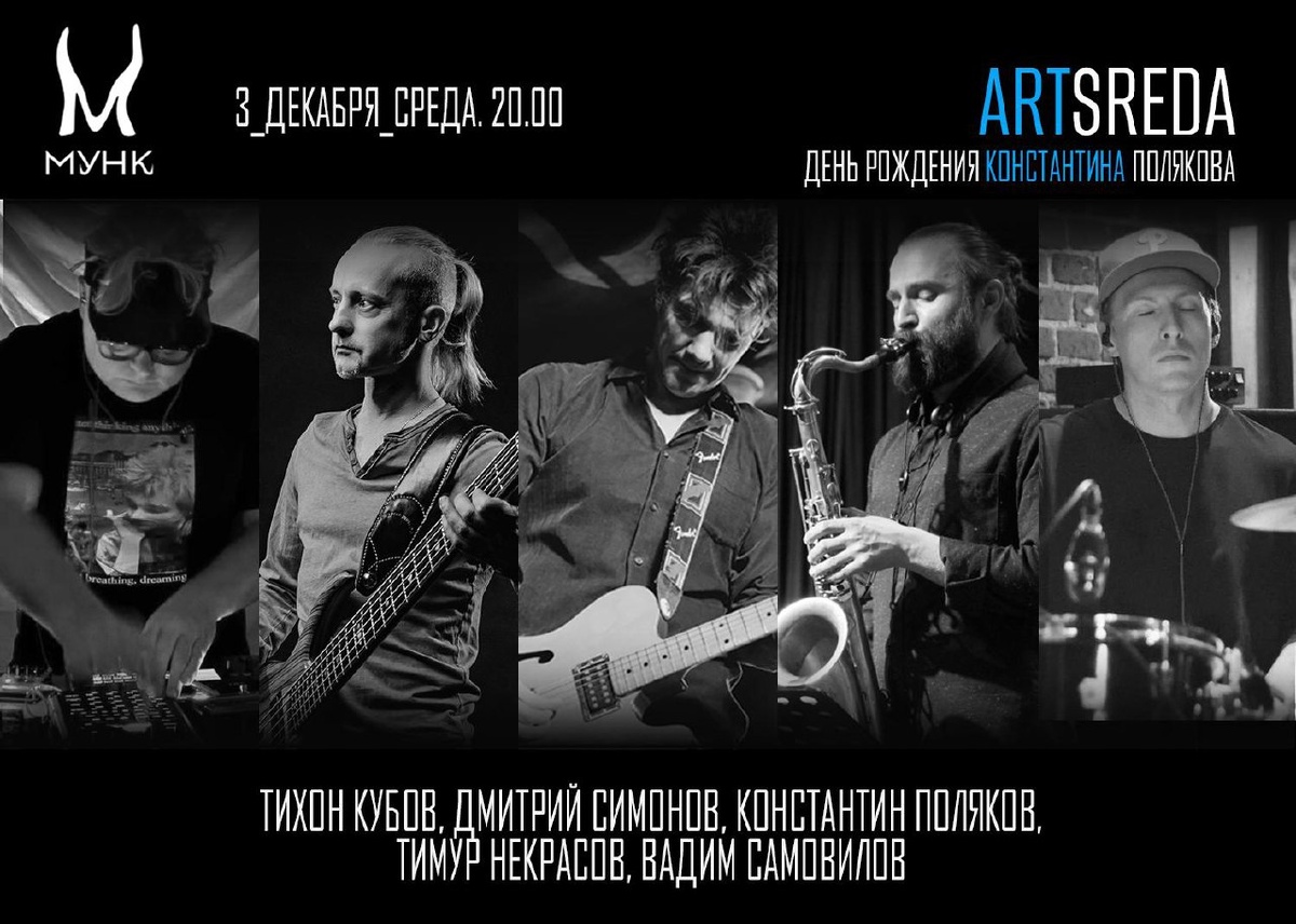 ARTSREDA: Импровизация как искусство жить 🎵✨ 3 декабря в баре «Мунк» состоится особенный вечер — встреча с музыкой, которая рождается здесь и сейчас, и праздник человека, который дарит ей свободу. ARTSREDA — это еженедельное путешествие в мир спонтанного творчества, где лучшие российские музыканты создают уникальные музыкальные полотна без границ и ограничений. В этот вечер на сцене: 🎸 Константин Поляков — гитара 🎸 Дмитрий Симонов — бас 🎧 Тихон Кубов — электроника 🎷 Тимур Некрасов — саксофон 🥁 Вадим Самовилов — барабаны Приходите и давайте вместе создадим незабываемый вечер в честь человека, который делает возможной саму магию спонтанного творчества 📅 3 декабря 📍 Бар «Мунк» ⏰ 20:00 🎫 Свободный вход (донейшен)