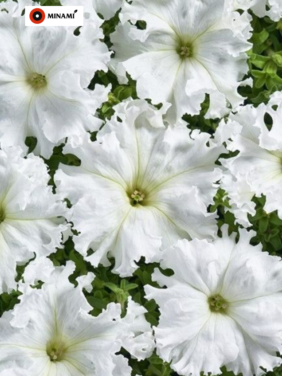 Minami Seeds Петуния бахромчатая крупноцветковая Афродита F1 Белая - у петунии цветки с волнисто-бахромчатым краем, крупные, белоснежной окраски, источают очень легкий деликатный аромат. Цветение очень обильное, растение хорошо ветвится, закладывая множество цветоносов, устойчиво к перепадам температуры, быстро восстанавливается после дождя и ветра. Хорошо смотрится в массовых посадках и цветочных композициях, при выращивании в вазонах и балконных ящиках образует небольшой каскад. Высота растения: 30-35 см. Диаметр цветка: 8-9 см. Место посадки: солнечные участки, грунт - питательный легкий , от слабокислого до нейтрального