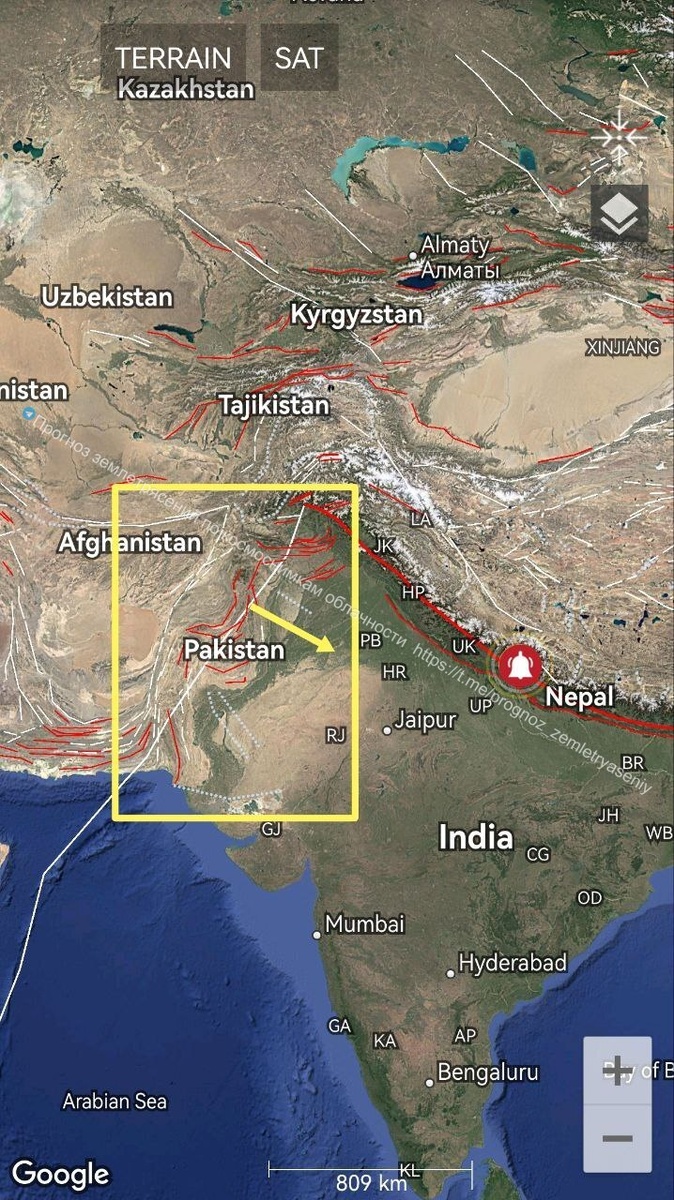 Сегодня сформировался ОСТИ уровня М7 по северо-западной границе Индостанской плиты