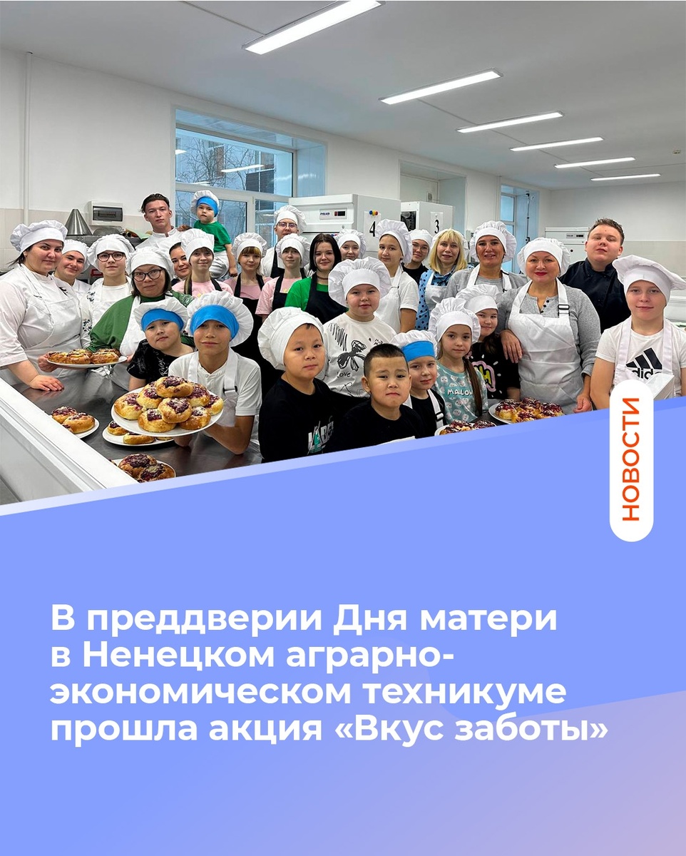 Мероприятие состоялось при поддержке партпроекта «Женское движение Единой России», а участие в нем приняли студенты техникума и члены семей участников специальной военной операции, включая жён и детей военнослужащих В специально оборудованном учебном классе, приспособленном под кулинарную мастерскую, участники акции провели мастер-класс по приготовлению домашней выпечки. Созданная в процессе работы атмосфера взаимопомощи позволила укрепить связи между поколениями и проявить особое внимание к женщинам, воспитывающим детей в непростое время. Акция «Вкус заботы» направлена на поддержку матерей военнослужащих, чьи сыновья несут службу в зоне проведения специальной военной операции. Приготовленные угощения стали частью поздравительных наборов для мам участников военных действий. Региональный координатор партпроекта «Женское движение Единой России» Ирина Пудовкина поделилась: «Ненецкий автономный округ с большим вниманием и теплом присоединился к Всероссийской акции «Вкус заботы», которая в
