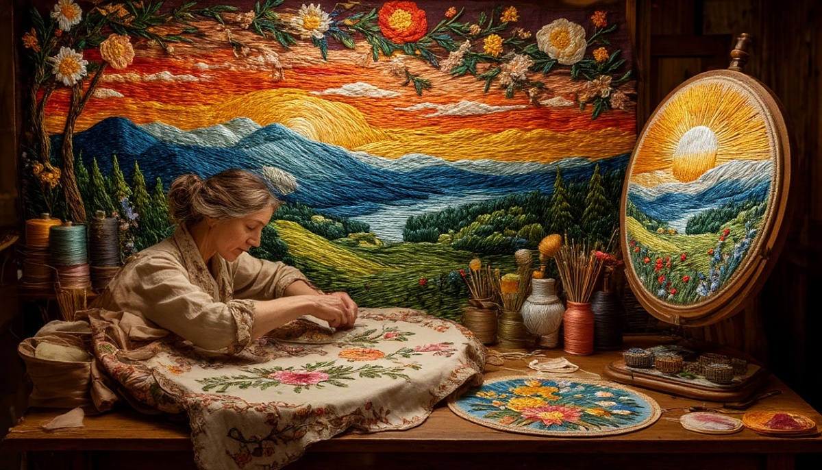 В высокой-высокой башне, что стояла на самой границе Ночи и Дня, жила-была швея по имени Аврора. Не было у неё ни станка, ни ножниц, ни сундуков с шелками и бархатом. Была у неё лишь одна-единственная Игла - длинная, тонкая, выточенная из осколка самой первой утренней звезды. И был моток Нитей. Но не простых. Эти нити она пряла из самого света. Золотые - из последних сновидений счастливых людей. Алые - из отблесков далёких вулканов и румяных щек спящих младенцев. Лиловые - из предрассветных туманов и лепестков самых стыдливых цветов. Серебряные - из лунной росы, что дрожит на паутинках в час, когда ночь уже не властна, а день ещё не наступил. Работа у Авроры была ответственная и тихая. Каждую ночь, когда последняя звезда замирала в ожидании, она выходила на свой балкон, затянутый дымкой-кисеёй, и принималась за вышивку. Её пяльцами было само небо, а тканью - бархатная мантия ночи. Она вплетала в темноту первую, самую тонкую серебряную нить - край будущего рассвета. Потом начинала выши