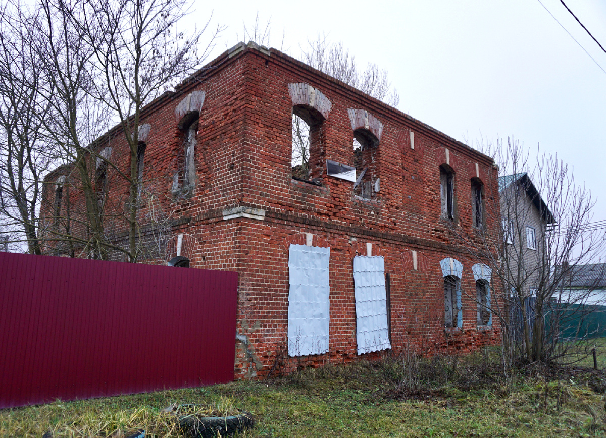 Его кирпичные стены ещё крепки, но перекрытий и крыши давно нет. На их перегнивших до состояния земли обломках выросли высокие деревья.
