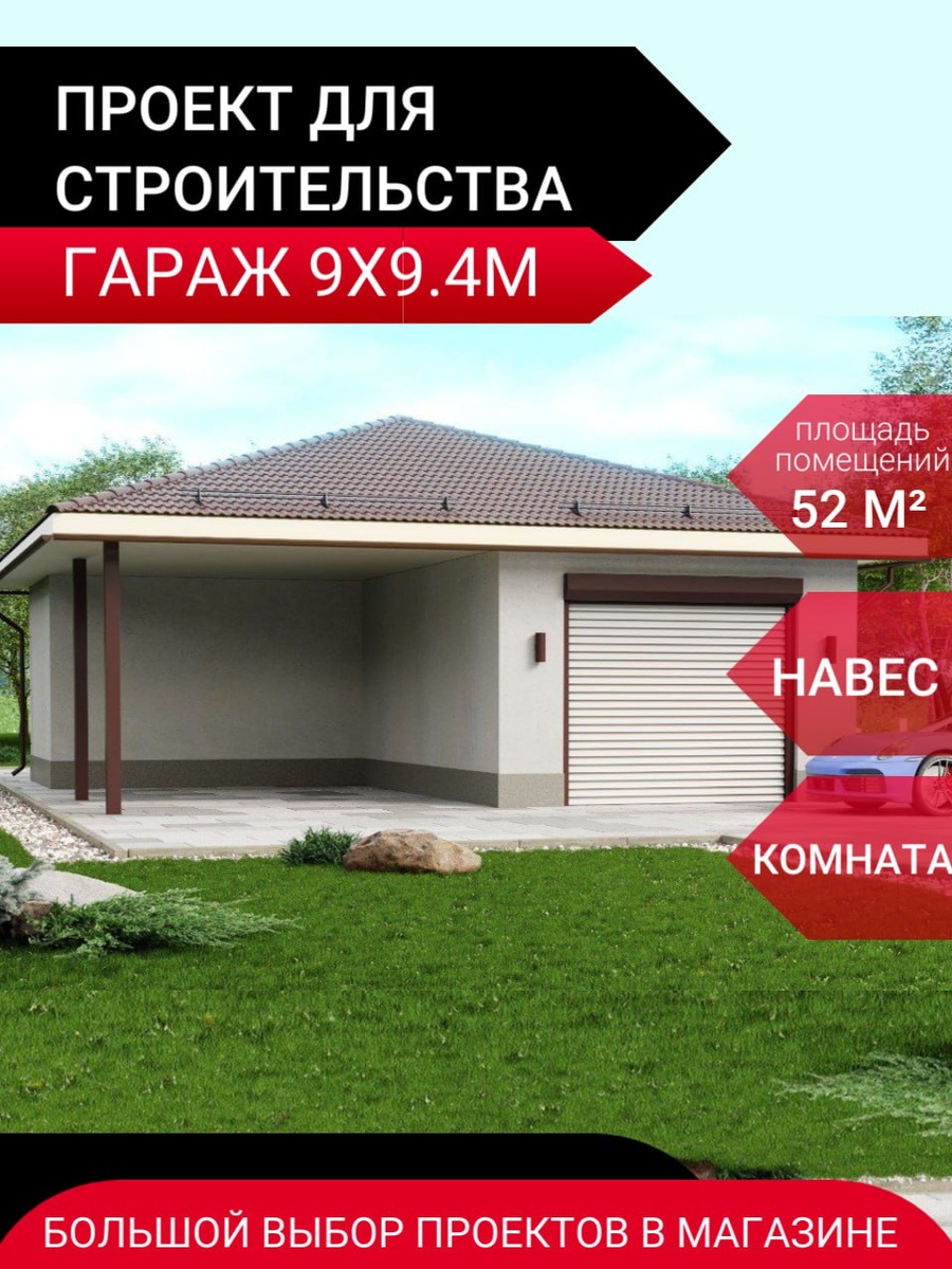 Готовый проект каркасного гаража 52м2