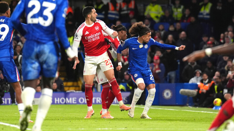 Лондонские «Челси» и «Арсенал» сыграли вничью в матче 13‑го тура чемпионата Англии. Встреча, прошедшая на «Стэмфорд Бридж», завершилась со счетом 1:1. В составе «Челси» мяч забил Трево Чалоба. У «Арсенала» отличился Микель Мерино. Хозяева с 38‑й минуты играли вдесятером после удаления Мойсеса Кайседо. «Арсенал» с 30 очками лидирует в турнирной таблице премьер‑лиги, «Челси» (24) идет третьим. Команда Микеля Артеты в следующем туре 3 декабря примет «Брентфорд», «Челси» в тот же день сыграет в гостях с «Лидсом». «Челси» (Лондон) — «Арсенал» (Лондон) — 1:1 (0:0) Голы: Чалоба, 49. — Мерино, 59. Удаления: Кайседо, 38.