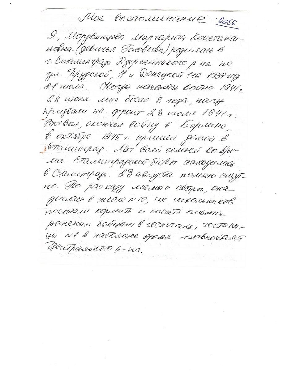 Воспоминания Мордвинцевой Маргариты Константиновны