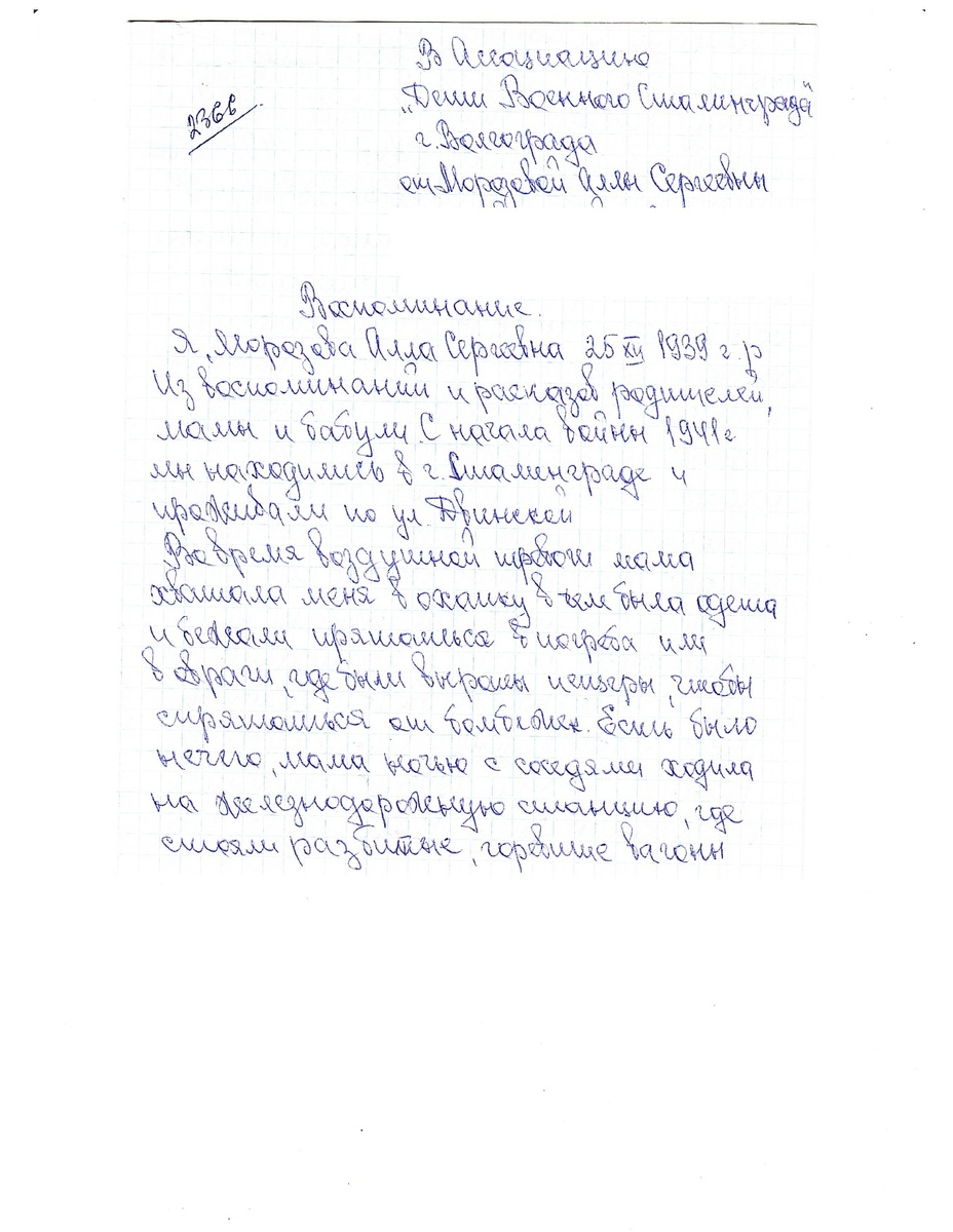 Воспоминания Морозовой Аллы Сергеевны