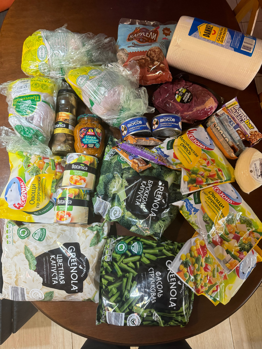Эта закупка полностью сделана в Чижике и её сумма 4350р, цель закупки пополнить морозилку, а также немного пополнить запасы консервов и сладостей. Итак, что у нас: три курочки по 1,5кг, по 190р за кг, кусок говядины 600г (взяла на пробу, цена 600р) и замороженные овощи большие пакеты по 800г (цены 159, 179 и 199р) и маленькие по 400г и 99р. На фоне этих цен маленький кусок адыгейского сыра за 300р выглядит деликатесом и так далее и тому подобное, на сегодняшний день Чижик опередил Пятерочку по ценам, потому что максимально аналогичная корзина в Пятерочке потянула на 5309р, то есть даже с кэшбеком в 15% в чижике получилось выгоднее. В то же время приложение самой пятерочки предложило до 3 декабря промокод на 25%, предложение действовало с 25 числа, но я о нем не знала, пу пу пу пу. Планирую завтра закупить там еще кое каких продуктов в долгую, а может и нет, подумаю. А вообще интересная, конечно арифметика. В пятницу были купончики от Инарктика а сегодня от Хендерсон. Все выходные