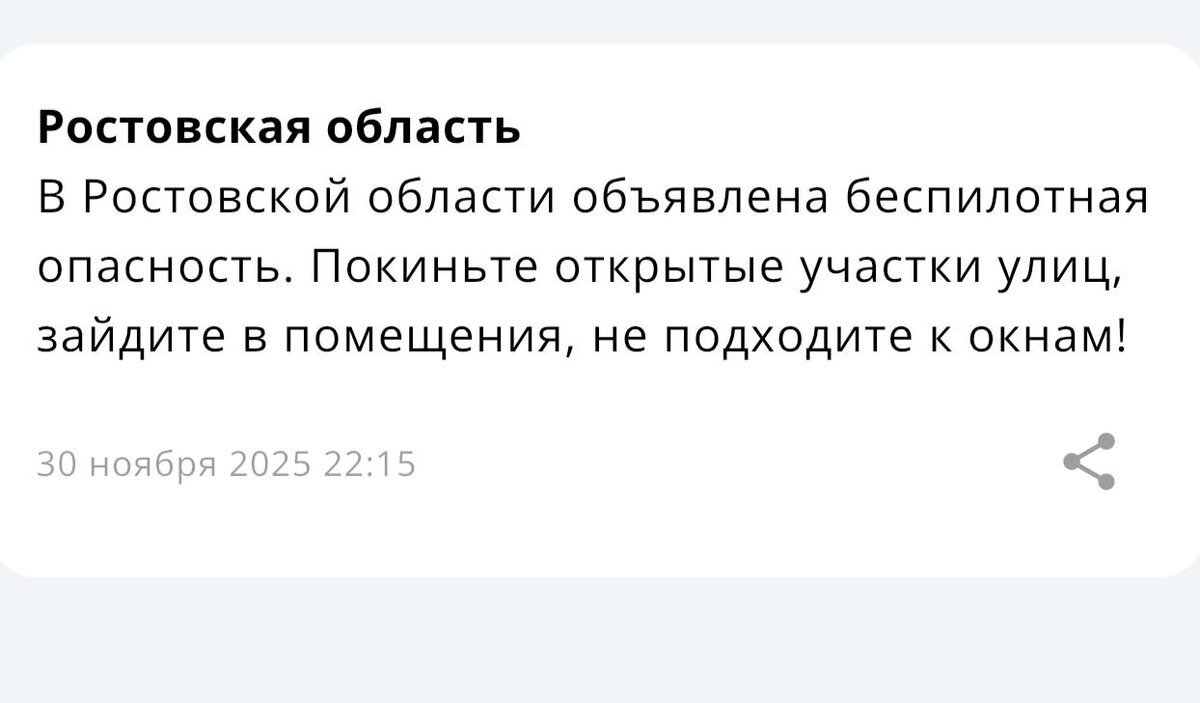 ❗️❗️❗️В Ростовской области объявлена беспилотная опасность