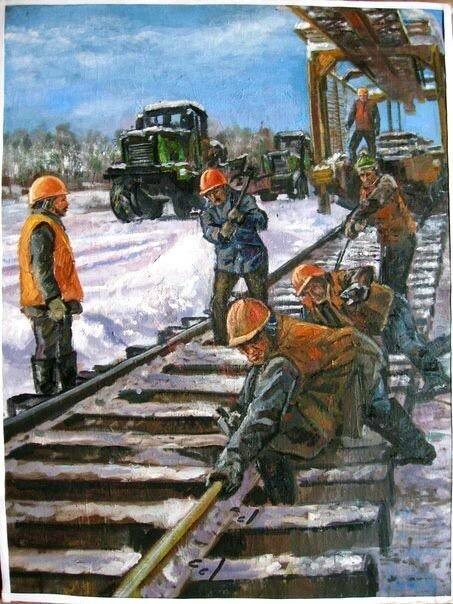 🟢Друзья, успешной рабочей недели! «Железная дорога строится» Автор: художник Артур Вишневецкий