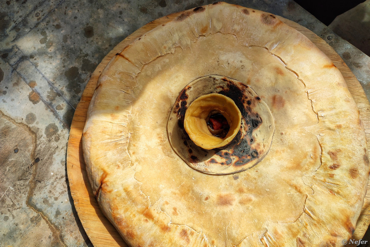 Блюдо туркменской кухни ишлекли представляет собой закрытый пирог с мясной начинкой, который часто сравнивают с пиццей. Однако, пицца готовится 10-25 минут, а ишлекли 5 часов. Ишлекли обычно готовят для почетных гостей. Для фарша используется баранина или козлятина. Согласно традициям, пирог закапывают в раскаленный песок. В наше время часто готовят в тандыре, помещая пирог между двумя сковородами и зарывая в золу. Ишлекли - любимая еда туркменских пастухов. Это и мясное блюдо, и хлеб, и способ приготовления, посуда не требуется. Мясо, закрытое в слое теста, готовится, как в скороварке. В центре пирога делают отверстие для выхода пара, чтобы он не порвал тесто. Потом серединку вырезают, можно посмотреть на видео ниже. Также для нас приготовили блюдо тандырлама - мясо козленка в тандыре. Тоже есть на видео. Едят, сидя на полу. Я люблю мясо, но туркменские блюда оказались для меня слишком жирными и тяжелыми. Хотя было интересно попробовать. Пешме готовится ежедневно. Это традиционное блю