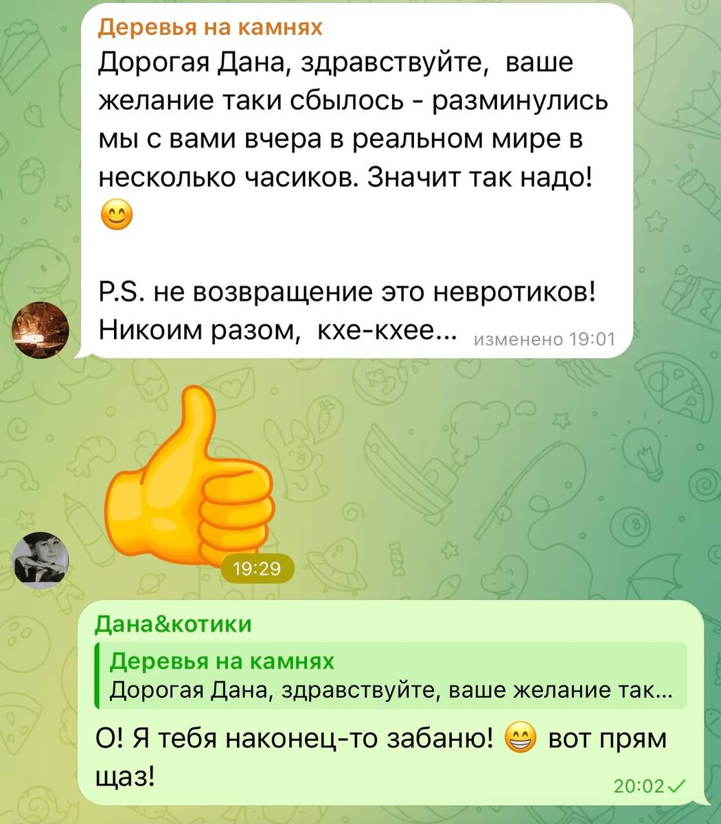 Этот псих вернулся! Для новых подписчиков: есть мужик с ником Деревья на камнях, который присылает странные аудио монотонным голосом, периодически впадает в образ драма-куин и удаляется из группы, хлопнув дверью… Дня три назад в очередной раз он это провернул с расшаркиваниями, дабы уход его не прошел незамеченным 😁🤦🏼♀️ и вот. Вернулся. На хрена, спрашивается? Всё, я отрубила ему функцию комментирования. Пусть молча сидит.