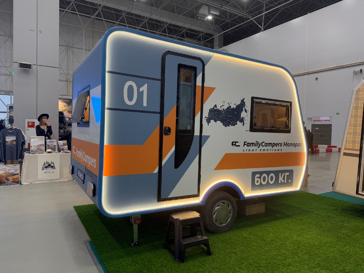 Новая модель дома на колесах от компании Family Campers (Москва) подойдет для буксировки практически любым автомобилем. Масса прицепа снизилась за счет использования инновационного материала с сотовой структурой "Монопан". Теперь буксировать свой домик на колесах смогут владельцы даже обычных седанов среднего класса и без дополнительной категории прав. Планировка прицепа самая популярная на 3-4 человека, то есть среднюю семью. На борту есть все необходимое для отдыха и автономного проживания. Разумеется запасы воды, газа, продуктов надо пополнять, а электричество будет вырабатываться от солнечных панелей на крыше. Конечно можно подключиться и к внешнему источнику питания, будь то генератор или городская сеть. Стены, крыша и пол имеют толщину 30 мм, все детали кузова сварены и в конструкции нет герметика и саморезов. Модуль и мебель в нем сварены в единое целое. Тип подвески резиножгут, это самый легкий вариант который в данном случае тоже позволяет экономить драгоценные килограммы вес