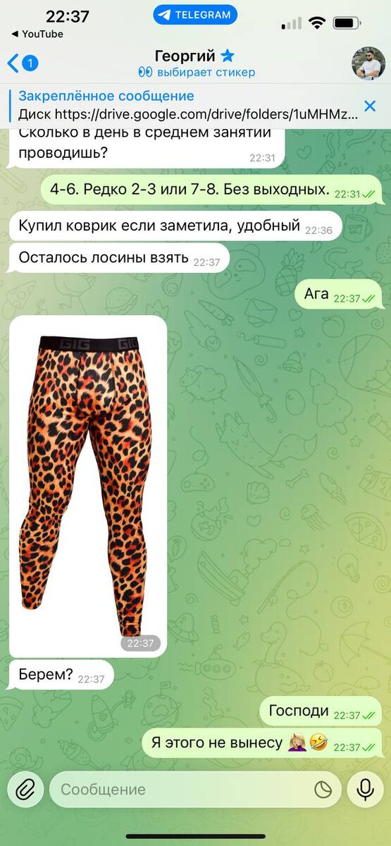 Ну, и для сладких снов вам: сегодня после семи блюд в индийском ресторане Катя попыталась освоить две сложные связки. Не освоила ни одну. Сегодня же мой продюсер решил купить штаны для йоги (коврик он уже купил и повторил все стойки на руках, которые делает Катя. Вам показывать не разрешил 😜) Штаны, ящитаю, огонь! 🤦🏼♀️🔥 В этом посте есть большое видео, которое не загрузилось в Дзен. Откройте оригинал поста в телеграме, чтобы его посмотреть