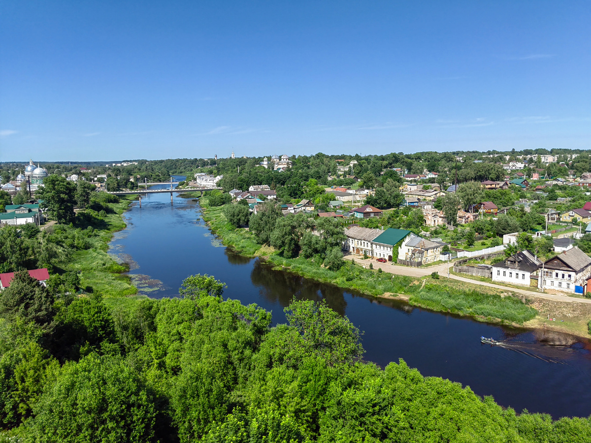 Торжок - как много в этом звуке для сердца русского слилось... Доброго времени суток, уважаемые читатели! Как вы поняли, сегодняшний наш рассказ посвящён одному из древнейших городов России, и древнейшему городу Тверской области - славному городу Торжку. Кстати, отсыл в заголовке к великому русскому поэту не случаен, Александр Сергеевич неоднократно бывал в Торжке и прославил его знаменитый кулинарный бренд - пожарские котлеты. Из письма А.С. Пушкина к С.А. Соболевскому от 9 ноября 1826 года: «На досуге отобедай У Пожарского в Торжке, жареных котлет отведай (именно котлет). И отправься на легке». Пожарский - это владелец местной гостиницы, соответственно котлеты можно было отведать в трактире при гостинице. Оригинальный рецепт пожарских котлет был утрачен, однако сейчас практически в любом заведении общепита Торжка можно их отведать. В нынешней версии это куриные котлеты, панированные сухарями. Ну да мы отвлеклись. Вид на реку Тверцу и Борисоглебский монастырь. Несмотря на то,