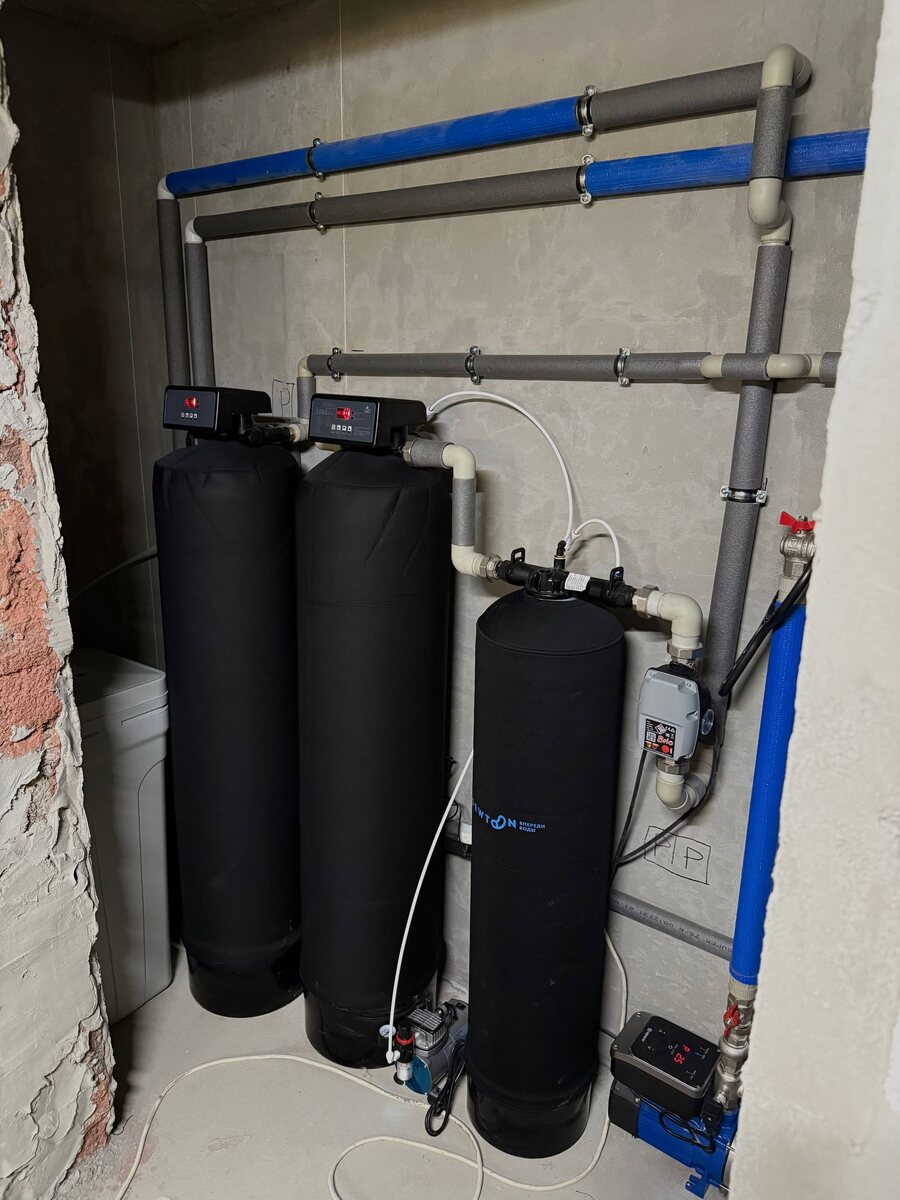 Недавно мы с командой AQUASTRONGSERVICE выезжали на объект в Сочи, где хозяин дома сделал анализ воды и самостоятельно заказал оборудование. На первый взгляд всё выглядело неплохо: большие колонны, фильтры, насосная станция, накопительный бак.