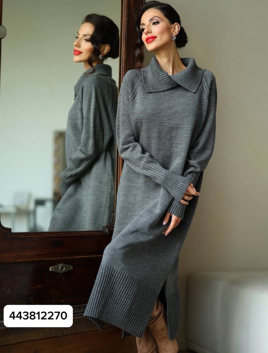1. Арт. 443812270 — вязаное трикотажное платье с боковыми разрезами