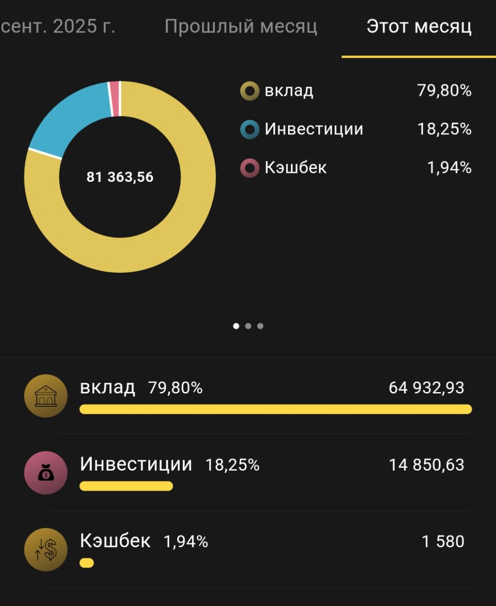 Ну что, месяц подошел к концу. Впереди декабрь, а там рукой подать до нового года. Это крайний месяц с таким пассивным доходом. Все вклады закрыты, первоначальный взнос внесен, ипотека открыта. В декабре первый платеж - 17 тыс. Уже открыт новый брокерский счет, но о нем позже будет информация (план пополнений составлен, самому интересно как это будет происходить). Ноябрь завершаем на значениях 81 363,56 рублей. Основной доход, это конечно же вклады. Я не вносил сюда доходность от фонда денежного рынка, который принес мне порядка 20 тысяч, деньги на который я перевел с момента выбора квартиры. Впереди новая история, и с учетом имеющегося багажа знаний, который я стараюсь ежедневно пополнять, надеюсь она будет развиваться быстрее. Какие у вас результаты?