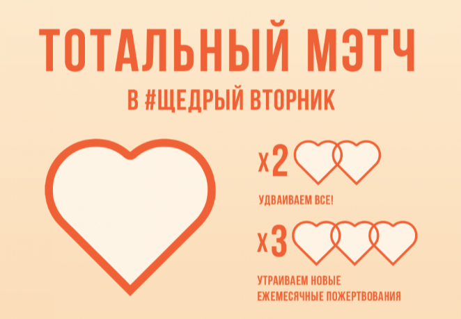 Специально к ежегодному Дню благотворительности #ЩедрыйВторник на фандрайзинговой платформе Благо.ру стартовала шестая ежегодная акция «Тотальный мэтч». 2 декабря бизнес-партнер традиционно удвоит все новые пожертвования и утроит суммы новых ежемесячных подписок. Найти любимую или новую для себя организацию и поддержать ее деятельность можно в разделе «Все организации». Инициатива проводится уже шестой год подряд. За предыдущие пять лет акция собрала более 18 миллионов рублей. Постоянные эффекты Тотального мэтча — это и рост количества пожертвований, и увеличение среднего чека пожертвований, и вовлечение множества новых людей в благотворительность, и превращение их в постоянных доноров. А отложенный и очень важный эффект — рост регулярной финансовой помощи для НКО благодаря новым рекуррентным подпискам, которые остаются с НКО на долгие годы, — руководитель Благо.ру Лилия Мударисова.