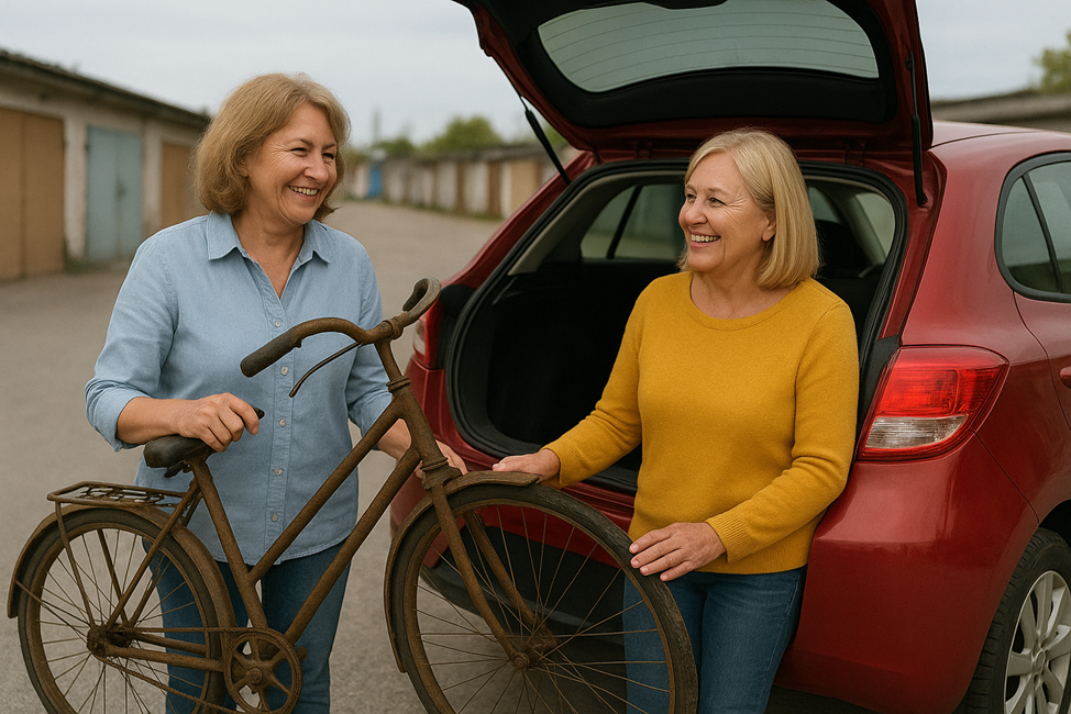Накачали колеса - держат! Смазали цепь - стал крутиться. Руль выпрямили, сиденье обмотали старым шарфом, чтобы не царапало. К вечеру велосипед уже выглядел прилично - конечно, не новый, краска облезла, но крепкий, добротный.