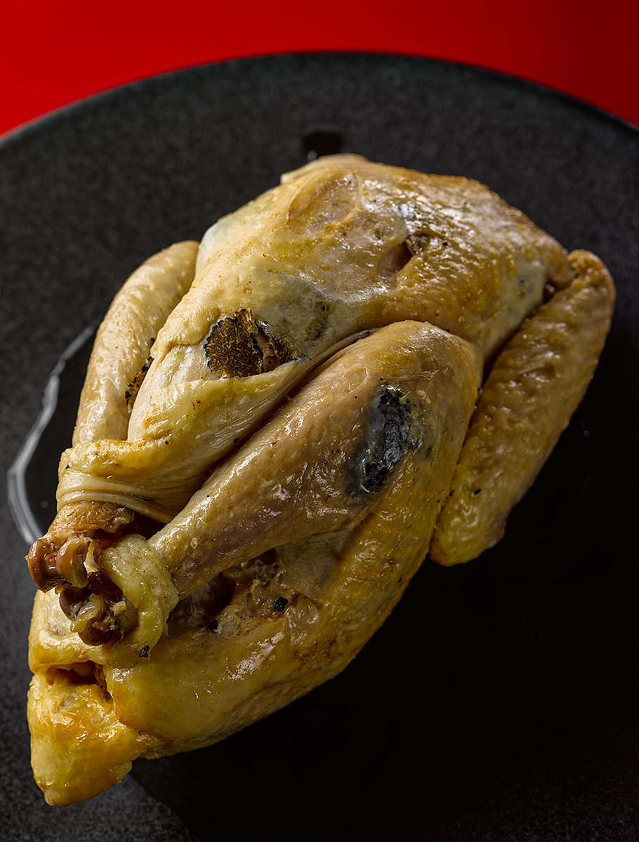 Еще один результат - весь вкус, весь аромат остался внутри птицы, а не выделился в бульон и в окружающую атмосферу. Вам знаком тот аромат, когда варится курица? Так вот, его не было. Вернее, он был, но весь остался в курице да в том литре воздуха, что содержался в пакете. Именно для того, чтобы донести эту порцию аромата до едока, мочевой пузырь с курицей у Поля Бокюза вскрывают не на кухне, а в зале, перед столом с едоками. Что проку, если повара вдохнут этот запах? Что проку, если все ваши соседи узнают, какую замечательную курицу вам удалось вчера купить на базаре? Запах, как и сама курица, предназначены в первую очередь едокам, так берегите его!