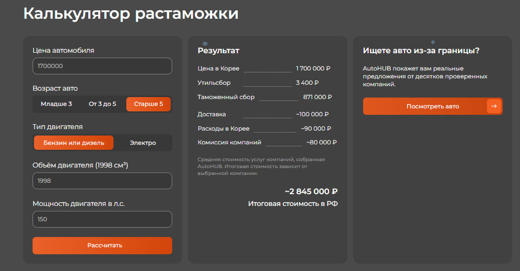 Наш калькулятор теперь считает стоимость авто на основании нового закона о повышении утилизационного сбора в РФ.