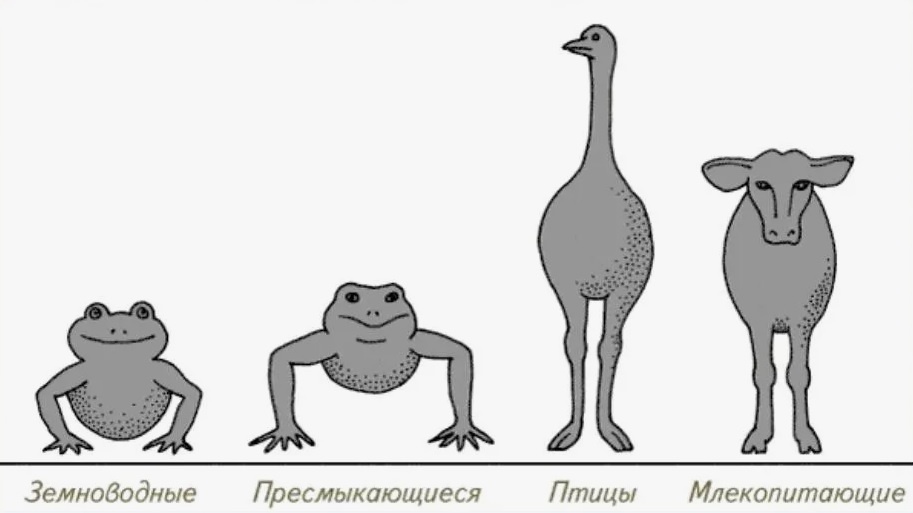 Важным событием в эволюции хордовых стало освоение наземно-воздушной среды. Ряд кистеперых и двоякодышащих рыб использовали удлиненные грудные плавники для передвижения по пересыхающим водоемам. Однако, первые настоящие рычажные конечности, способные поддерживать тело над землей, появились у амфибий. У земноводных конечности отходят от туловища в стороны, а затем направлены вниз. Поэтому, при передвижении по суше брюшная часть туловища находится на земле. Чтобы приподнять туловище амфибиям требуется потратить много энергии. По этой причине много времени лягушки, жабы проводят неподвижно, дожидаясь пролетающих насекомых и схватывая их хитро устроенным, длинным языком. У пресмыкающихся конечности несколько сместились вниз. Поэтому, туловище при движении оказалось заметно приподнятым над землей. Одновременно сформировались прогрессивные изменения в осевом скелете. В результате тяжесть тела распределилась более равномерно между четырьмя конечностями, и в целом подвижность рептилий значител