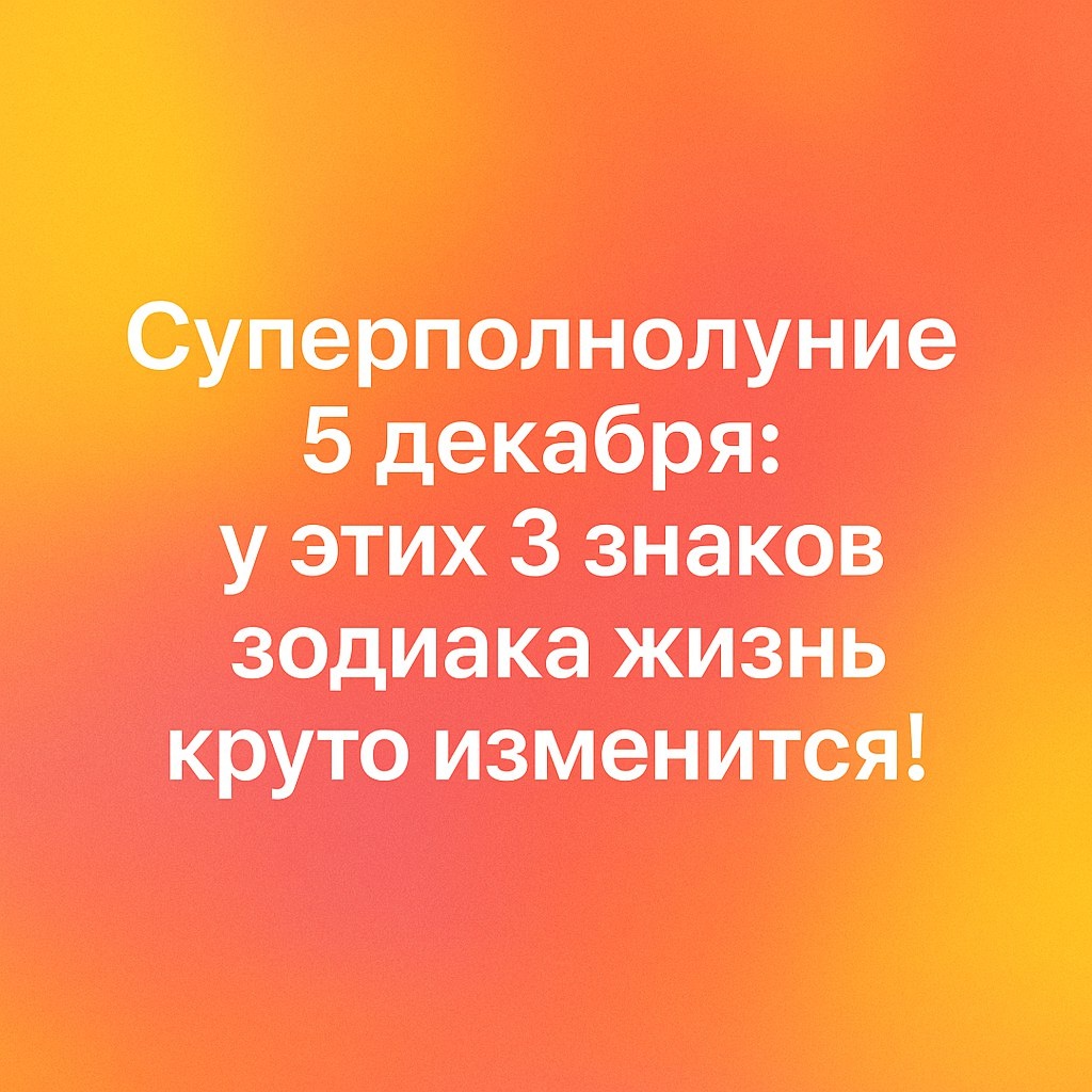 5 декабря над нашим миром взойдёт особенное, редкое Суперполнолуние — магический момент, когда сама Вселенная словно приоткрывает завесу судьбы, высвечивает самые тайные уголки души, а заодно даёт каждому из нас ключи для больших перемен. Это время, когда ваши желания становятся особенно громкими, когда энергия витающего в воздухе света способна пролить новый смысл на прошлое и подсветить дорогу, которую раньше вы не могли разглядеть.