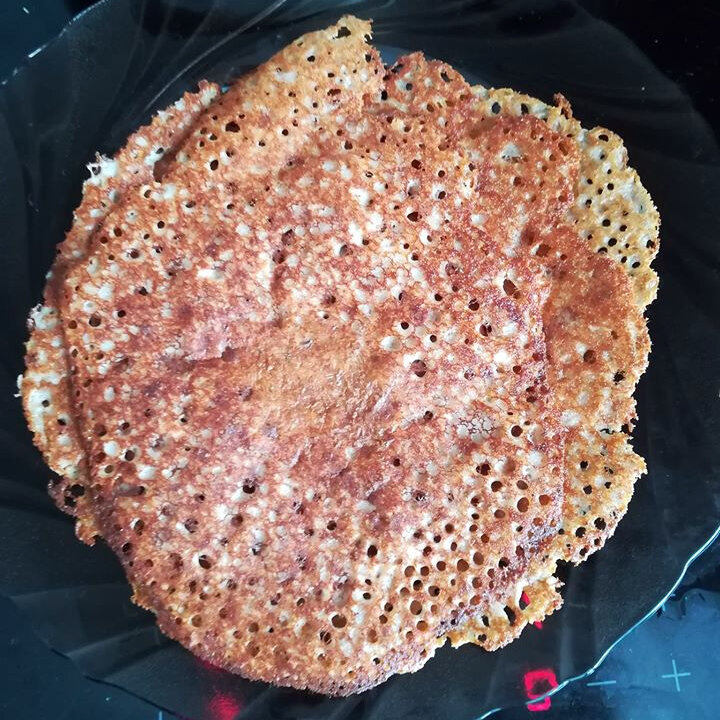 ✔ Мука гречневая - 2/3 стакана; ✔ Мука ржаная - 1/3 стакана; ✔ 1 стакан кефира; ✔ 1 стакан горячей воды; ✔ 2 яйца; ✔ Соль - 1 ч. л. без горки; ✔ Сода – 1 ч. л. без горки; ✔Масло растительное - 1 ст. л. Высыпаем в миску муку, разбиваем яйца, перемешиваем, вливаем кефир, соль, соду, вымешиваем. Добавляем горячую кипяченую воду, проще сказать кипяток, как следует вымешиваем, разбиваем все комочки венчиком. Тесто должно получится не жидкое, как на обычные блины, но и не густым, как на оладьи. Вот какой-то средней консистенции. Оставляем тесто минут на 10-15 постоять. Готовим сковороду. Выливаем на неё растительное масло и хорошо разогреваем, но не до «белого дыма». Большой соусной ложкой вливаем на середину сковородки тесто, слегка даём ему растечься. Выпекаем на среднем огне. В приготовлении этих блинчиков главное - чтобы они не рвались, хорошо переворачивались. Поэтому выпекаем не торопясь, и переворачиваем широкой лопаткой. Печём с двух сторон. КБЖУ на 100 г – 131/5,5/5,0/15,2. + 6 фот