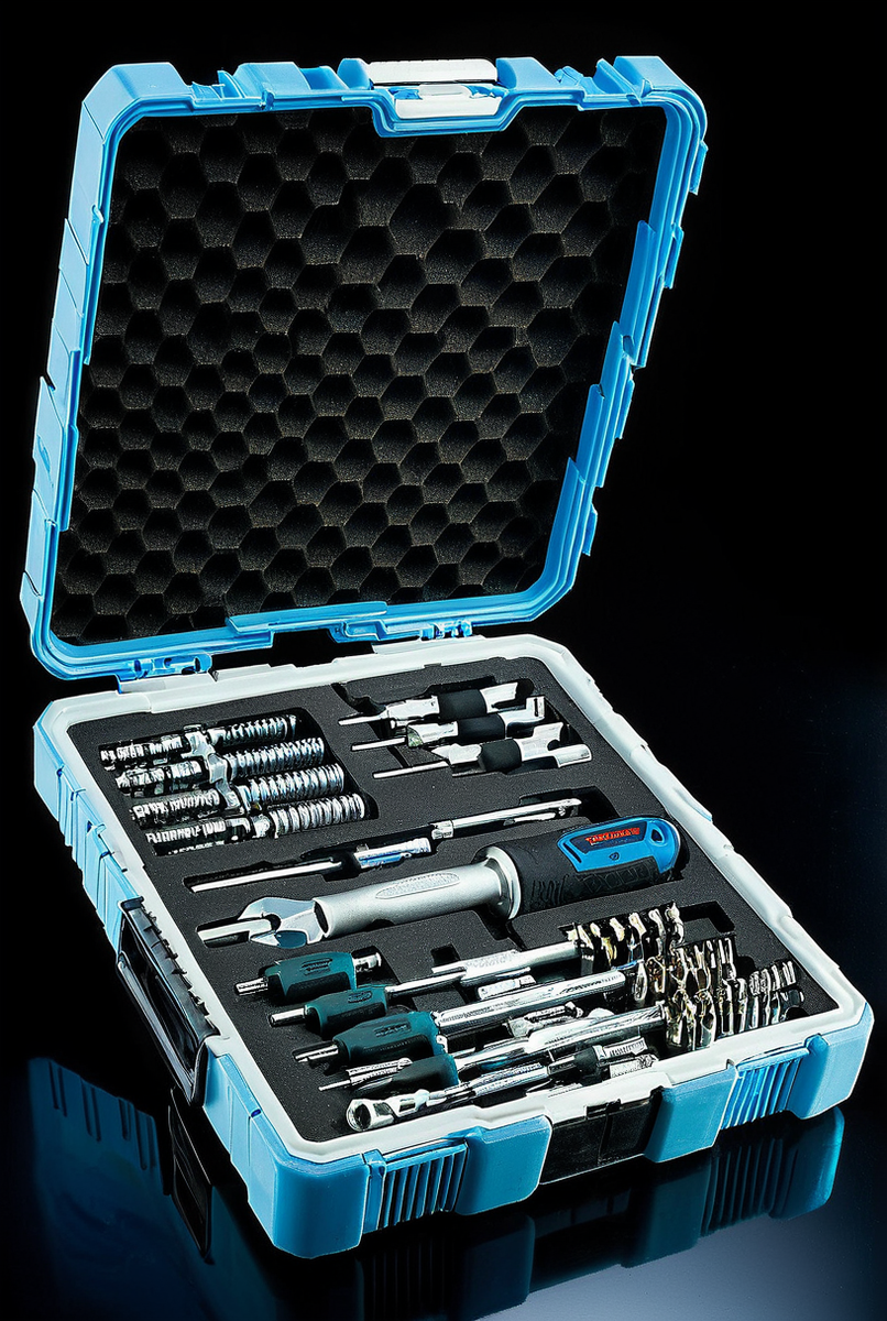- Профессиональный инструмент. Работа в гараже или мастерской требует профессионального инструмента. Например, для автомобиля нужна максимально расширенная комплектация. Здесь не обойтись без бит Torx ("звездочка"), включая Torx-TR, и большого ассортимента торцевых головок. Оснастка для инструмента должна выдерживать высокие нагрузки, поэтому требования к качеству и количеству предметов (часто более 100) значительно выше.