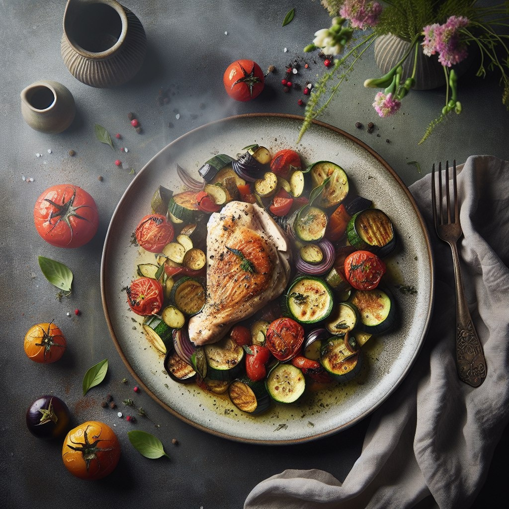 Курица по-провански с овощами Готовим вкусный и полезный ужин: нарежьте 200 г куриного филе, 1 цукини, 1 помидор, 80 г баклажана и половину красного болгарского перца кубиками. Залейте овощи 1 ч.л. оливкового масла, добавьте соль, перец, прованские травы, перемешайте с курицей. Выложите смесь в форму и отправьте в духовку при 180°C на 30 минут. Перед подачей присыпьте свежей зеленью. Калорийность: 85 ккал/100 г Общий вес: 550 г Сбалансированный приём пищи — залог прогресса 🏆 Ты на правильном пути, продолжай! @ppmenuday