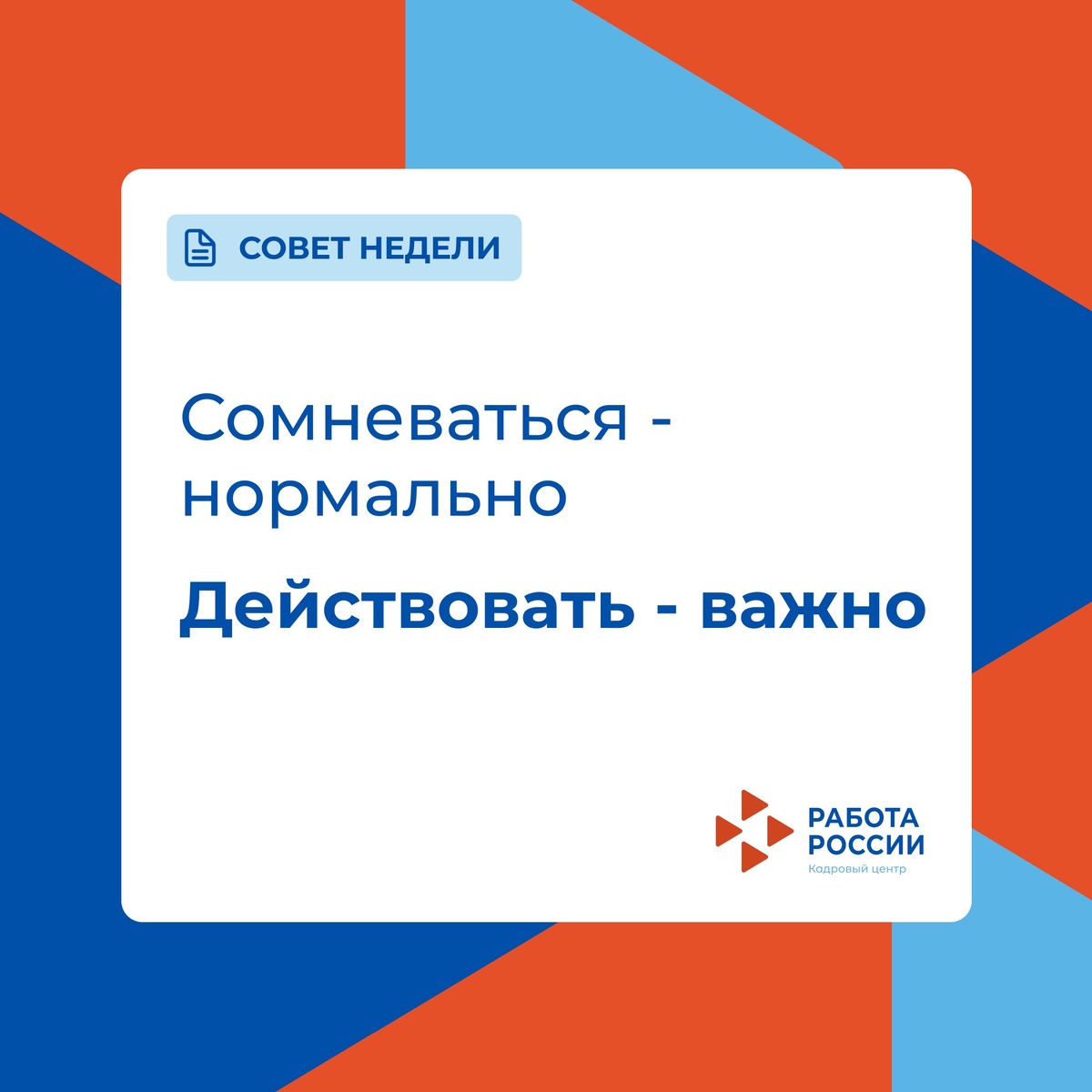 💡 Совет недели: сомневаться — нормально. Действовать — важно. Каждый хотя бы раз ловил себя на мыслях: «А вдруг не получится?», «Вдруг выберут кого-то другого?». Это естественно — новые шаги всегда вызывают переживания. Но меняет ситуацию только действие. Один отклик, одна консультация, одно обновленное резюме могут сдвинуть карьеру с мертвой точки и открыть то самое окно возможностей. 👩💻 Южно-Сахалинский Кадровый центр — рядом. Карьерные консультанты помогут увидеть ваши сильные стороны, подготовиться к собеседованию и почувствовать уверенность в себе. Иногда достаточно просто сделать первый шаг — и дорога к новой работе начинает идти навстречу вам. Подписаться на Кадровый центр | ВК | ОК #Совет_недели
