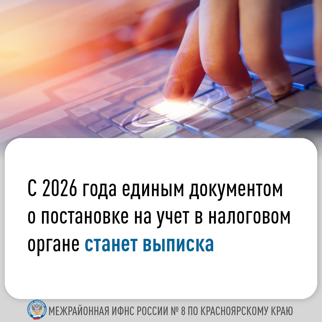 Межрайонная ИФНС России № 8 по Красноярскому краю информирует. С 1 января 2026 свидетельство о постановке на учет в налоговом органе упраздняется. Для физических лиц подтверждать постановку на учет будет выписка из Единого государственного реестра налогоплательщиков (ЕГРН). Выданные ранее свидетельства менять не придется, они сохраняют свою силу. Электронная выписка из ЕГРН: