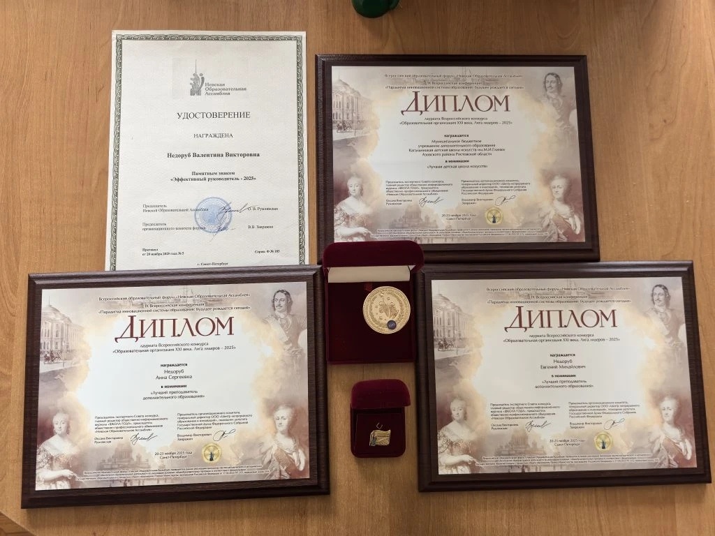 Кагальницкая ДШИ им. М.И. Глинки стала победителем Всероссийского конкурса в номинациях «Лучшая детская школа искусств» и «Лучший преподаватель дополнительного образования» Дипломом Лауреата Всероссийского конкурса «Образовательная организация XXI века. Лига лидеров-2025» в номинации «Лучшая детская школа искусств» награждена МБУ ДО Кагальницкая школа искусств им. М.И. Глинки. Лауреатами в номинации «Лучший преподаватель дополнительного образования» стали преподаватели хореографии Евгений Михайлович и Анна Сергеевна Недоруб. Директор школы Валентина Викторовна Недоруб награждена памятным знаком «Эффективный руководитель-2025».