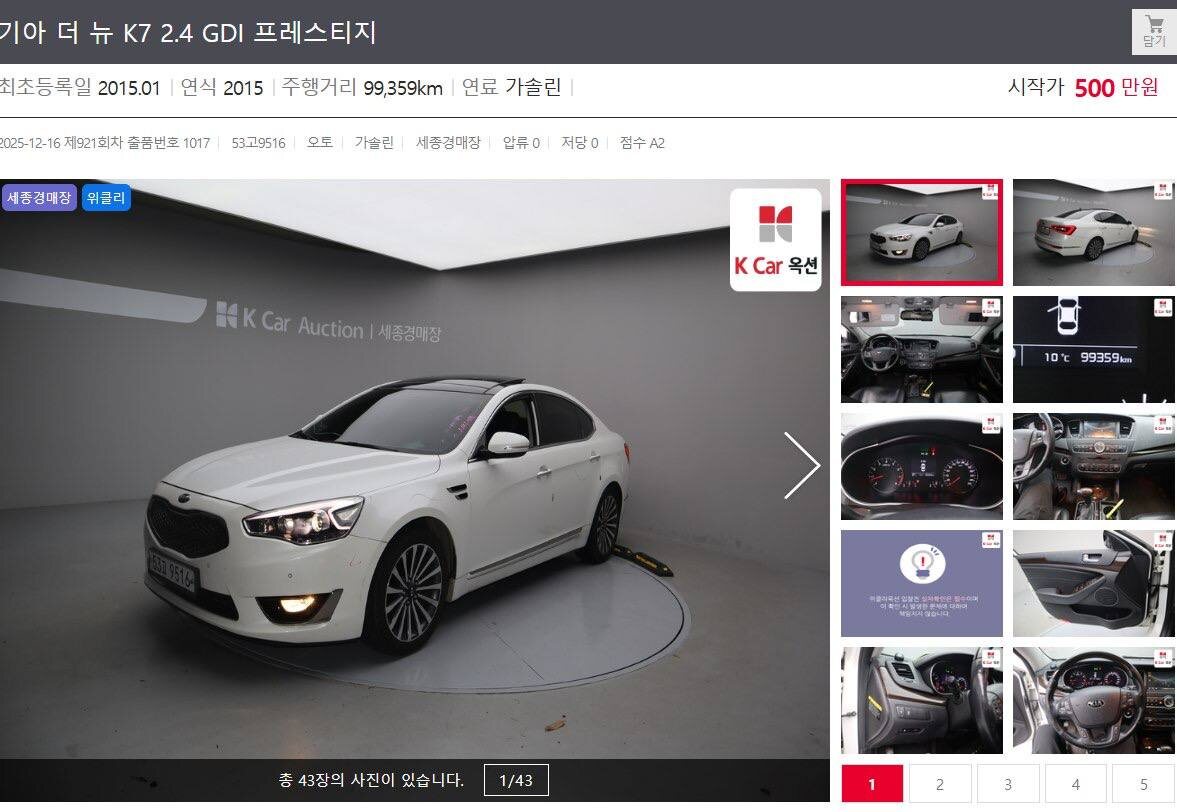 🔥 Авто с закрытого аукциона! 🚗 Марка / Модель:KIA K7 2.4 📅 Год выпуска: 2015/01 🔢 Пробег: 99.000км 💰 Стартовая цена: 5.000.000WON (3.450$) 📌 Автомобиль попал на закрытый аукцион — отличная возможность купить машину по цене значительно ниже рынка. ⚙️ Техническое состояние соответствует данным аукциона. Машина доступна для осмотра/проверки. 🎯 Возможна доставка, оформление и помощь в участии. 📞 Для подробностей, отчетов по авто и участию в торгах — пишите в личку!