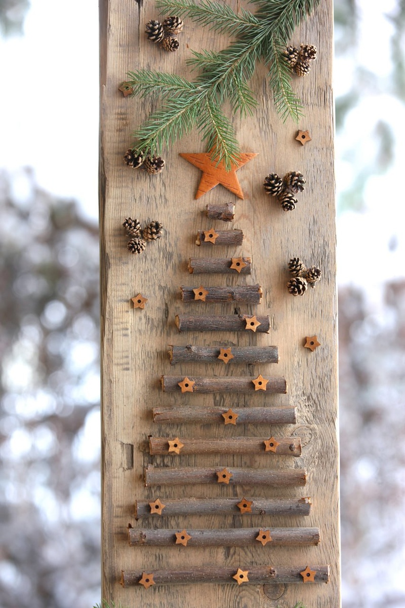 Авторская колонка Настасьи Суслиной Новогодний декор своими руками Продолжаем подготовку к Новому году, и вот декоративное решение в эко-стиле. Для этого понадобится любая доска (лучше, если будет старая, с налётом времени). Её можно аккуратно отшлифовать специальной машинкой или просто наждачной бумагой, чтобы придать более благородный вид. Ёлочку формируем из обычной ветки диаметром ~1 см, нарезая её секатором на части. Основание ёлочки по размеру должно быть чуть меньше ширины доски, а каждая следующая веточка – на 0,5 см меньше. То есть нарезаем отрезки в сторону уменьшения, пока последний не будет шириной ~3 см. Далее крепим их к доске с помощью клеевого пистолета снизу вверх – от основания до макушки, делая между ними отступы. Украшаем маленькими звездочками, шишками и большой звездой из коры. Можно добавить пару еловых веточек. Доску можно прислонить к любой стене, садовому столику либо вообще воткнуть в сугроб. Куда бы вы её ни поставили, смотреться она будет очень стильно