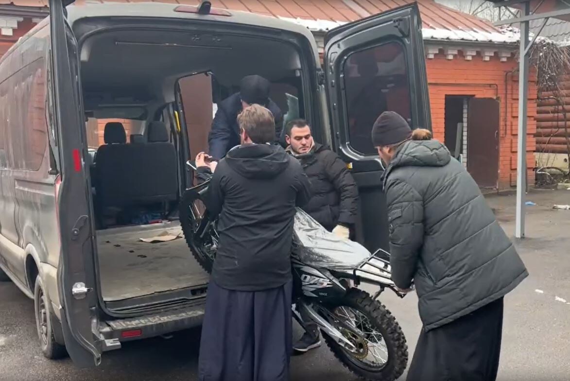 Орловская епархия передала мотоциклы бойцам, выполняющим задачи СВО.🤝 В Епархии рассказали об очередной гуманитарной миссии. По благословению митрополита Орловского и Болховского Тихона, сформировали гуманитарные грузы для бойцов-земляков нескольких подразделений. Отвезли груз разведчикам - землякам из Ливен, которые выполняют задачи на Краснолиманском направлении. Передали им мотоцикл, продукты и письма от детей. Еще один груз - два мотокроссовых мотоцикла для бездорожья и необходимое снаряжение доставили артиллеристам из Мценска, которые выполняют задачи на том же направлении в ЛНР. Следующая остановка - медицинская рота в ДНР, туда также везут гуманитарный груз. (Скриншот из видео с сайта Орловской митрополии) @1oblastnoi