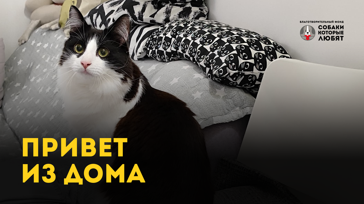 Привет из дома от Крюшона (Кренделя) 🐈⬛ Хозяева познакомились с ним на фестивале «Котики, которые любят» 5 января.🐾 Через месяц Крюша понял, что это его дом, его никуда не отдадут обратно и был счастлив! Раньше он жил в котокафе и там казался хозяевам незаметным, а дома, наоборот, раскрылся, ходит хвостиком, пристает к большому брату-коту и бегает за игрушками. Любимая игрушка -лакомство - кроличьи хвосты. Крюшон обожает на них охотится, прятать, а с утра вместе с хозяйкой они ищут всех спрятанные игрушки, вот такой маленький ритуал для двоих. Крюша очень разговорчивый и порой выдает такие звуки, что домашним кажется, что у них живут не пара котов, а все 15! Приходите и вы на следующий фестиваль «Котики, которые любят» 5 января 2026 в ТРЦ «Небо», возможно ваш котик будет там. Регистрация по ссылке.
