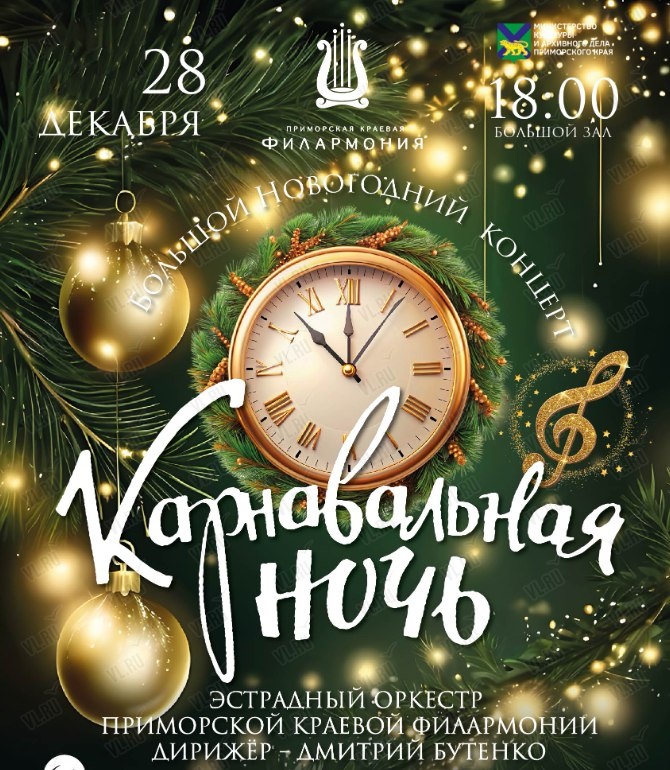 🎭🎄Концерт «Карнавальная ночь» Приморская Филармония 28 декабря Осталось 3 места: Партер, ряд 7, место 4 – по 4300 руб. Партер, ряд 15, место 5 и 6 – по 3800 руб. Стоимость – с учетом транспорта ‼️Завтра в 16.00 сдаем билеты 📱8902 077 5108 📱8902 077 5109