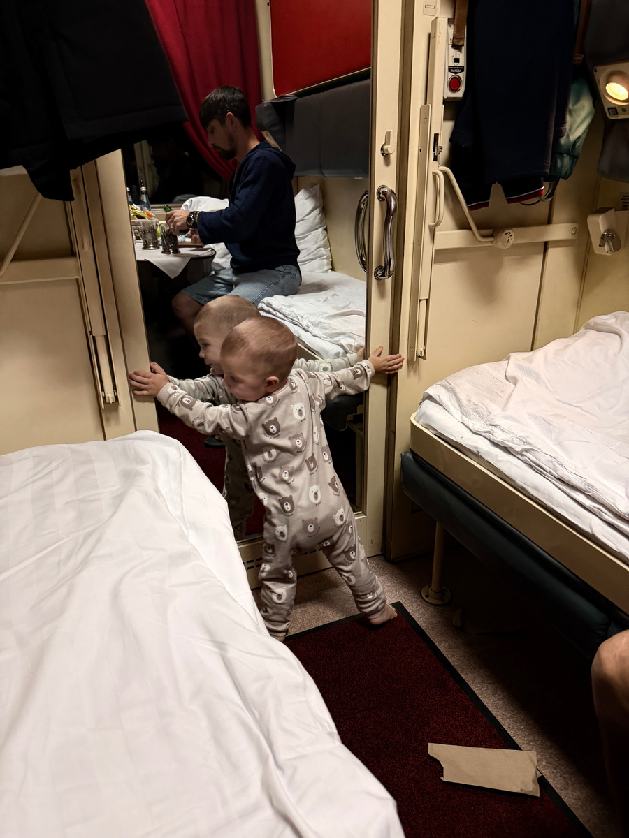 Грязища на полу, кругом ноги и сумки, Платон лезет на этот пол, мы его не пускам, он психует и сидеть не хочет. А ехать-то почти пять часов. Мама моя дорогая. Если бы не ребёнок, то да…вполне себе нормально. Но с малышом в таких условиях было очень непросто. Не только нам, пытающимся сделать так, чтобы Платон никому не мешал, но и самому ребёнку.