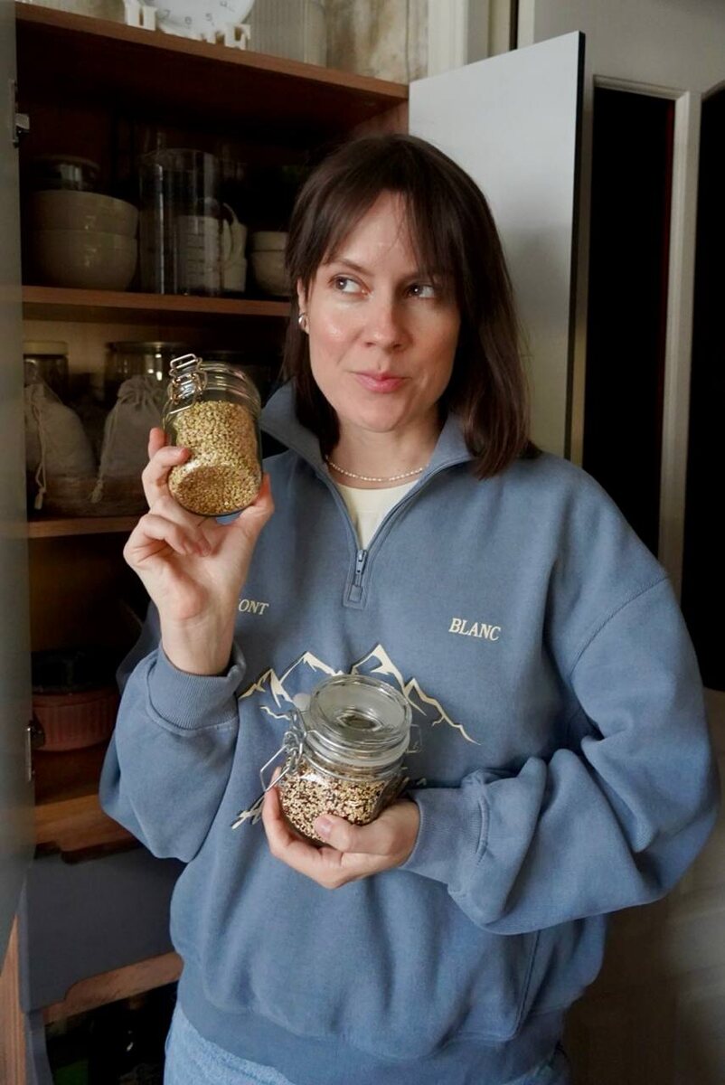 Запасы на кухне ☺️ 🤍 Любимый шкафчик с вкусняшками и запасами на все случаи гастрономической жизни👐🏻 Посмотрим вместе, что интересного здесь есть 👀 Несколько видов безглютеновой муки: рисовая (из бурого и белого риса грубого помола), нутовая, из зеленой гречки. Для блинчиков, оладушек, хлеба, лепешек, выпечки и тд. Крупы: овсяная, зеленая гречка, киноа, амарант, рис. Для завтраков, обедов и ужинов в качестве гарниров. Орехи: миндаль, кешью, грецкий орех, фундук, финики. Для приготовления молока, сыра, конфет, выпечки, а также в качестве посыпки для разных блюд. Семечки: конопляные, тыквенные, лен, чиа. Идеальная добавка к разным блюдам. Лен и чиа позволяет делать «веган-яйцо» для выпечки. Консервы: нут, чечевица, фасоль, зеленый горошек, кукуруза, перетертые томаты, оливки, артишоки. Бобовые использую для приготовления хумуса, паштета, карри, соусов. Когда нет времени для замачивания и варки, использую уже готовую версию в банках. Стараюсь выбирать варианты не содержащие сахар ?