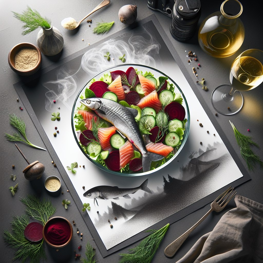 Салат «Сибирская свежесть» с копчёным сигом и квашеной свёклой