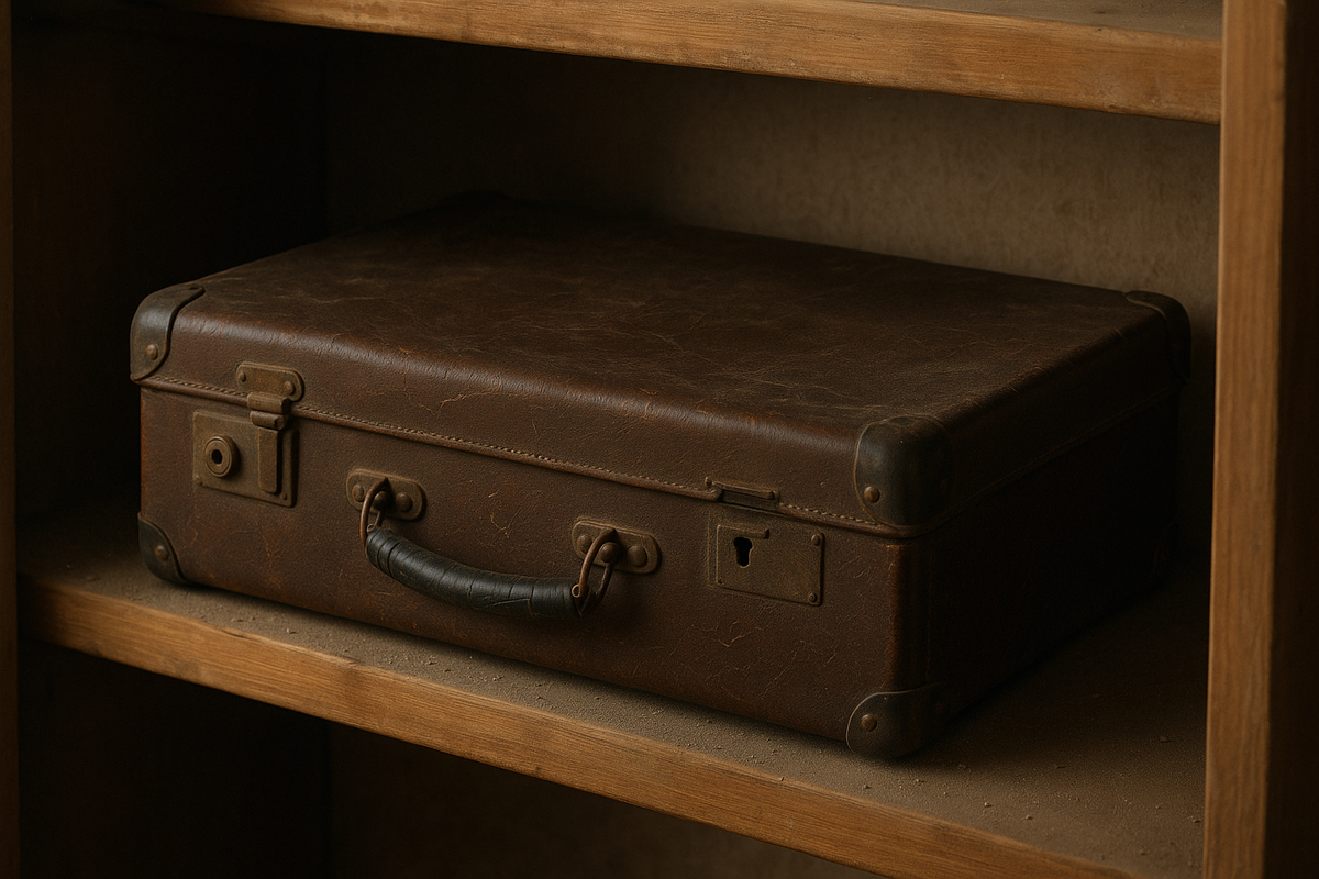 На верхней полке шкафа, где обычно селится только пыль и забытые вещи, много лет стоял старый коричневый чемодан. Кожа на нём пошла трещинами, ручка обмотана изолентой, металлические углы потемнели. Замка на нём не было — когда‑то сломался и так и остался только след от него.