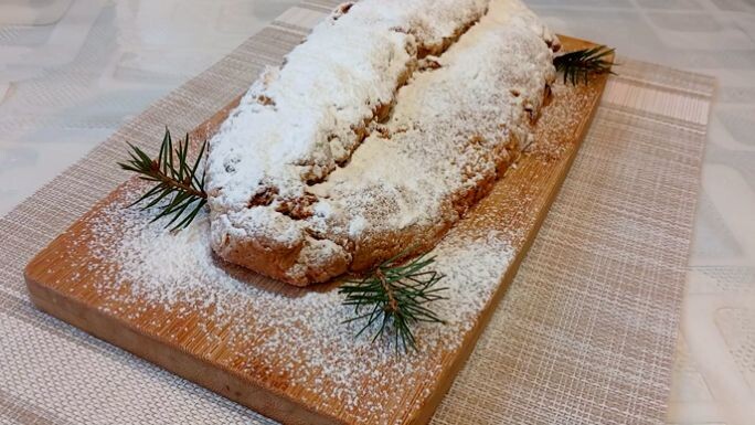 Всем приветик ! Скоро праздники давайте начнем потихоньку готовится, Этот не вероятно вкусный, цитрусовый Штоллен понравится каждому. Давайте готовить ! Что нам понадобится : 470 гр муки +на подпыл. 2 яйца 150 гр сахара 200 гр творога 200 гр сливочного масла 10 гр разрыхлителя цедра одного лимона цедра двух апельсина 1 п ванилина 1/3 ч л корицы 4 ст л апельсинового сока 200 гр любых сухофруктов 100 гр жареный орех любых Сухофрукты замочить на ночь 80 мл апельсинового сока 80 мл рома или коньяка. Просушить перед замешиванием в тесто. Выпекать 180 гр 50 минут 25 минут выпекаем под фольгой а после без фольги. Замешиваем тесто, размягчённое сливочное масло сахаром замешать миксером .Добавляем цедру апельсина и лимона По одному вводим яйца , потом творог .Если миксера нет , то творог протрите через сито. Добавим сок лимона по желанию ванилин разрыхлитель , Орехи корицу . Потихоньку вводим муку Немного замешав тесто добавляем сухофрукты и хорошо тесто замешаем. Тесто будет немного липнут